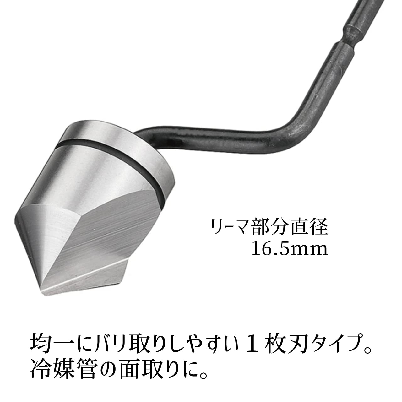 商品名:クランク型着脱式リーマ 持ち手+刃(リーマ径16.5mmタイプ)<br> 寸法:リーマー部分 直径16.5mm 着脱式ホルダー部分 長さ12.5cm 幅2.1cm<br> 対象管サイズ:1/4-5/8サイズ(二分-五分)<br> 銅管などのフレア加工のバリ取り用に。他の金属製品の面取りにも。<br> 刃先は非常に鋭利となっておりますので取扱には充分にご注意ください。