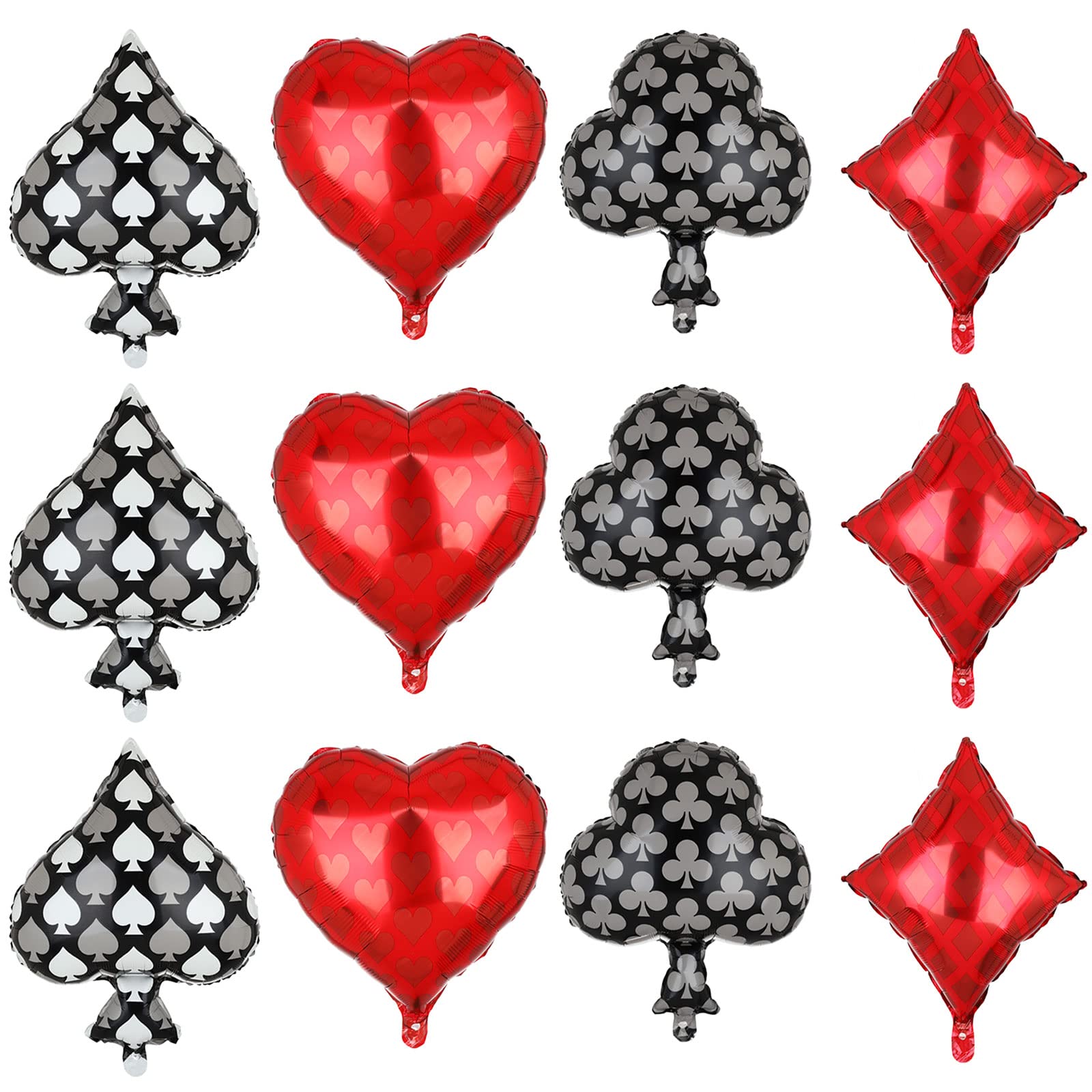 カジノホイルバルーン 12個 カジノ マイラー パーティーデコレーション用品 ゲームトランプ バルーン ラスベガスパーティー ポーカー イベント カジノ ナイト 誕生日装飾