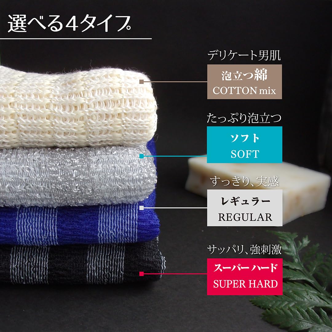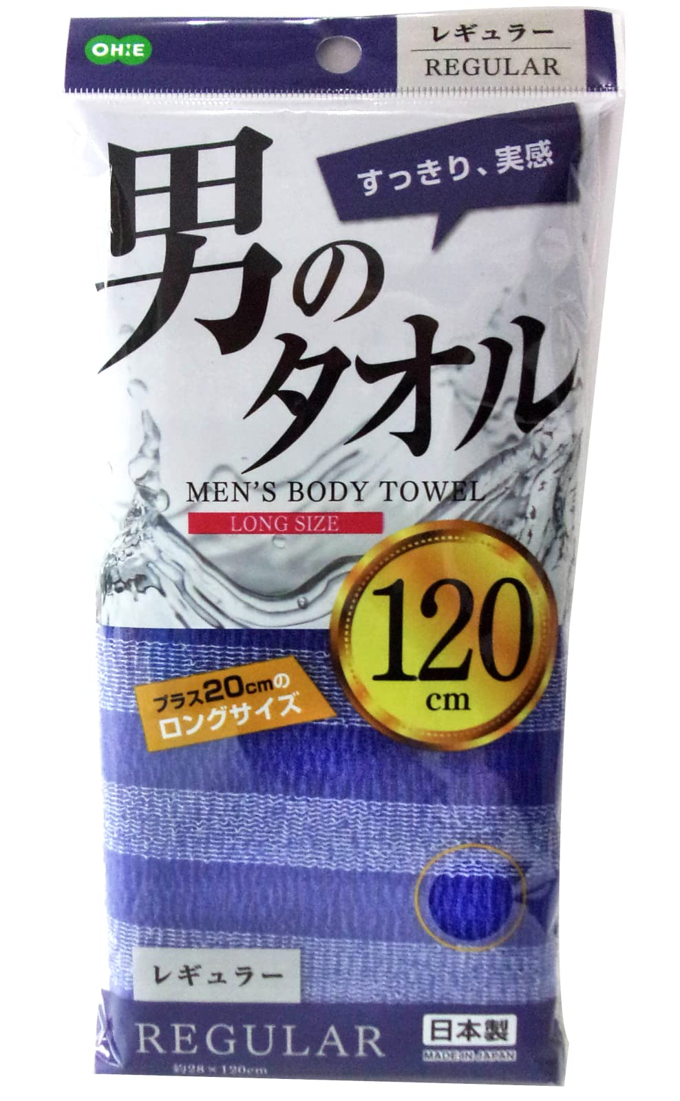 オーエ ボディタオル レギュラー 約縦20cm×長さ120cm ブルー 男のタオル 体洗い ナイロン タオル 豊かな 泡立ち 日本製