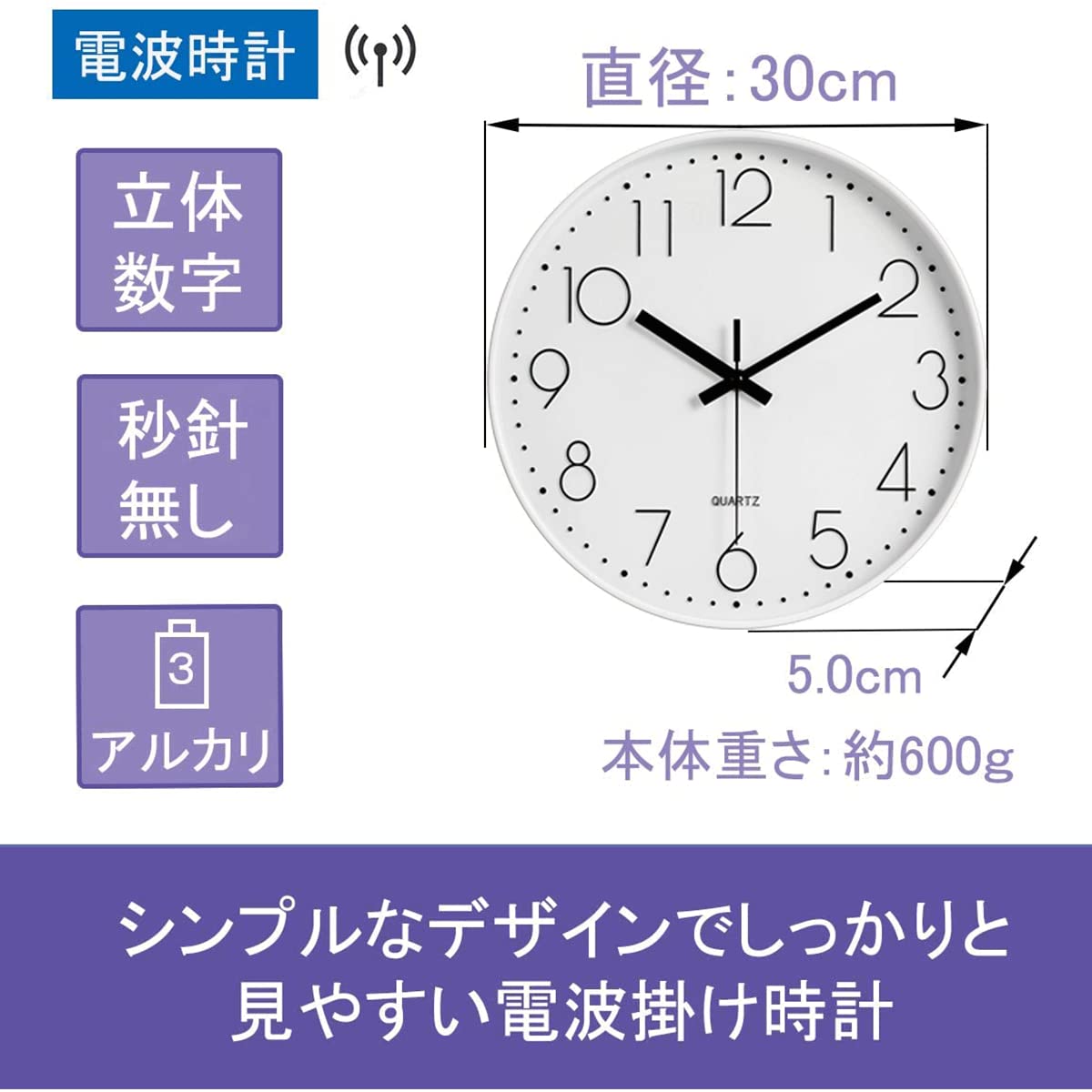【シンプル、ファッション】シンプルな文字盤に凸凹な3D立体数字の視認性が高くて。飽きのこないデザインで静音の電波掛け時計が部屋、キッチン、リビング、玄関、ベッドルーム、居間、図書館、オフィスなどふさわしい、シーンを選ばず馴染みます。