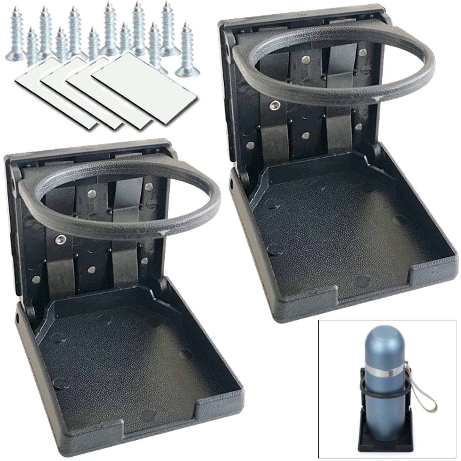 heizi ドリンクホルダー 車 折りたたみ 2個 セット ネジ付き 折り畳み カップホルダー 後部座席 船 ボート トラック (ブラック)