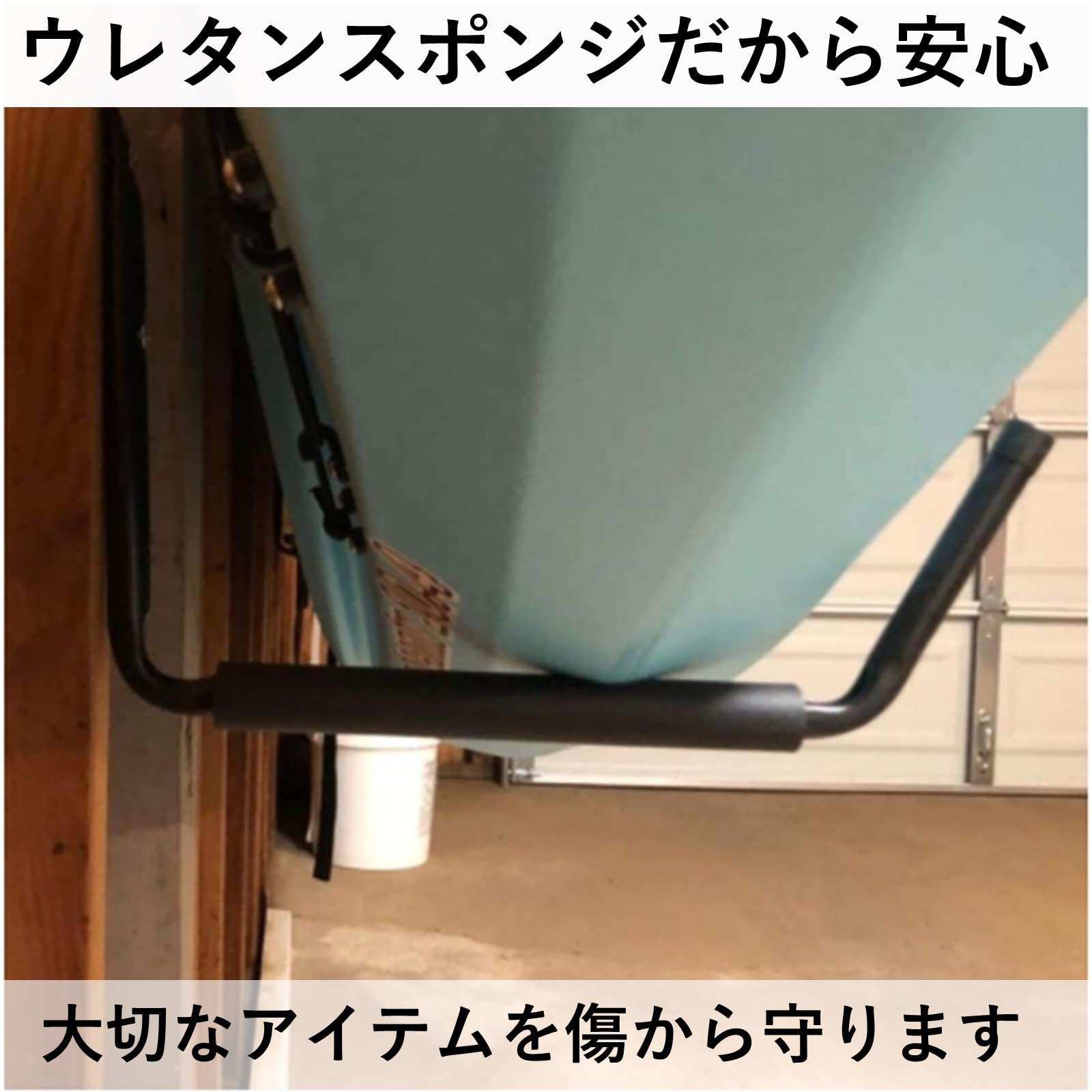 【ウレタンスポンジでアイテムを保護】耐候性と耐久性に優れ、サビに強い粉体塗装を施した鋼管製のガレージフックです。さらに厚みのあるEVAアームプロテクターを採用しており、大切なアイテムを傷から保護しながら収納できます。