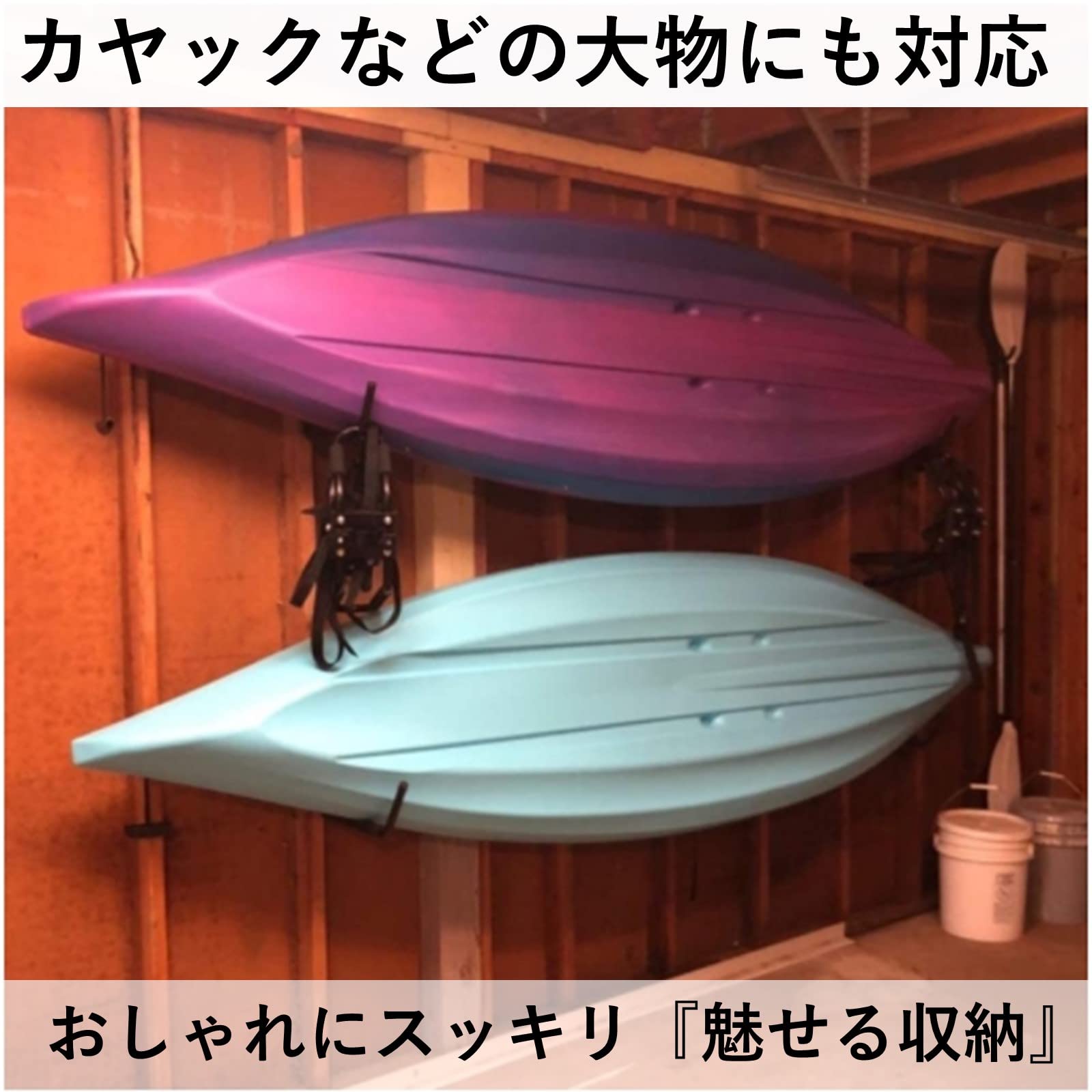 【様々なアイテムに使える】カヤック、カヌー、サーフボード、SUP (サップ)、自転車のスタンドして、また折りたたみ椅子、はしご、材木資材など大物の壁掛け収納にお使いいただけます。