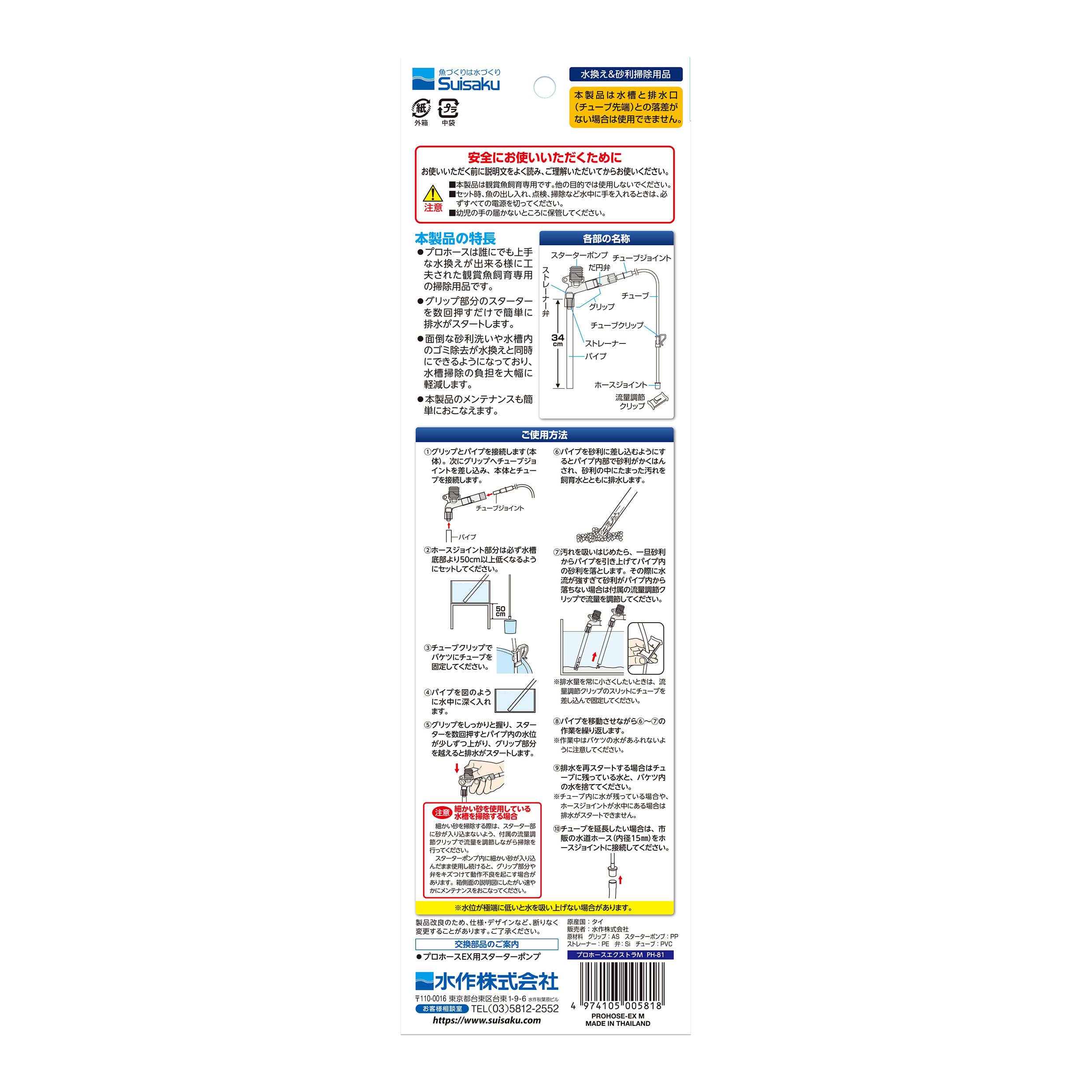 ●グリップ部分のスターターを数回押すだけで簡単に排水がスタートし、水槽内のレイアウトを崩すことなく観賞魚や水草にもやさしい水換えを実現します。