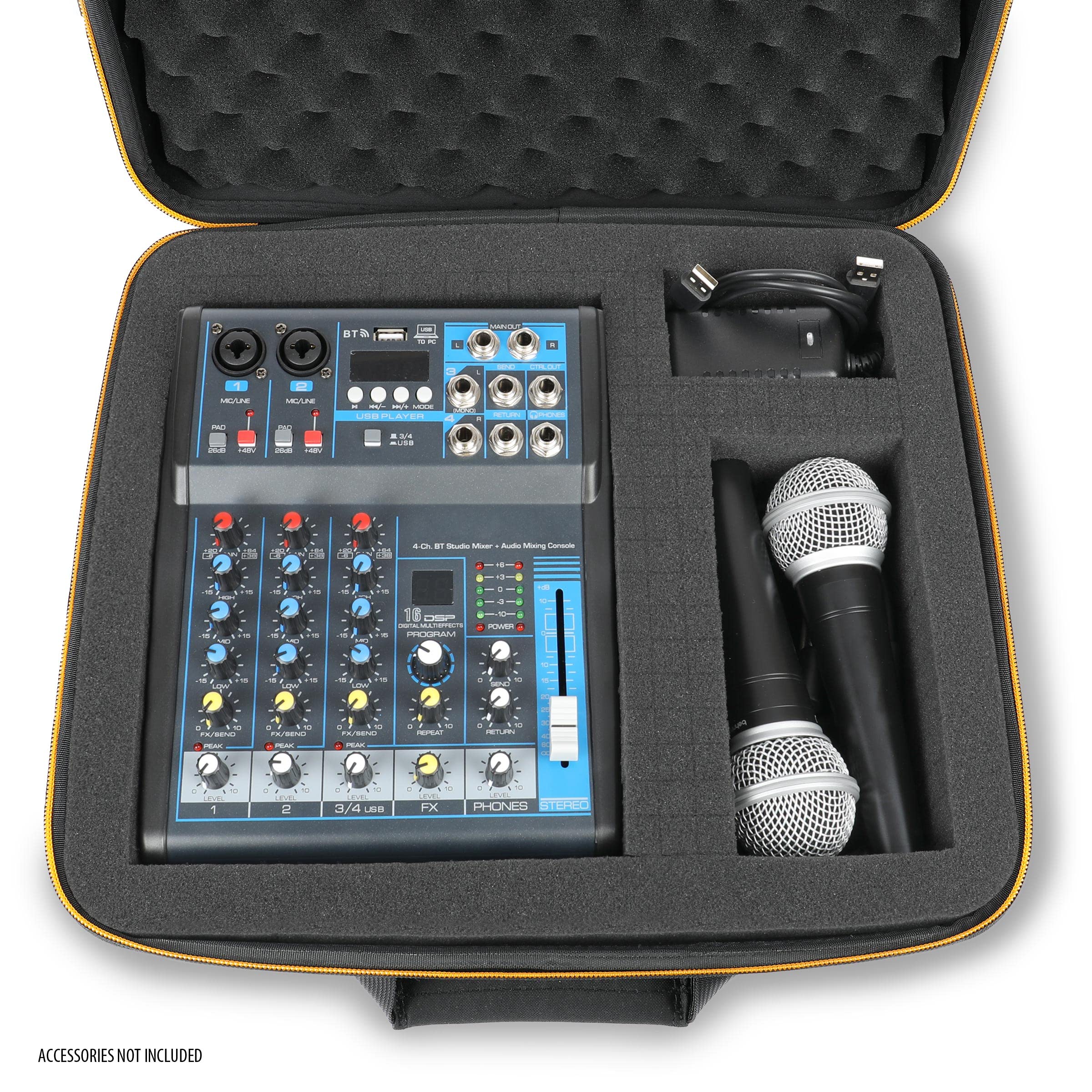 USA Gear DJ Mixer トラベルケース カスタマイズ可能なフォーム内部 保護ハード外装 - オーディオミキサーケース Yamaha MG10XU、Pyle PMXU43BT、Mackie ProFX6v3 6チャンネルなどDJ機器に対応