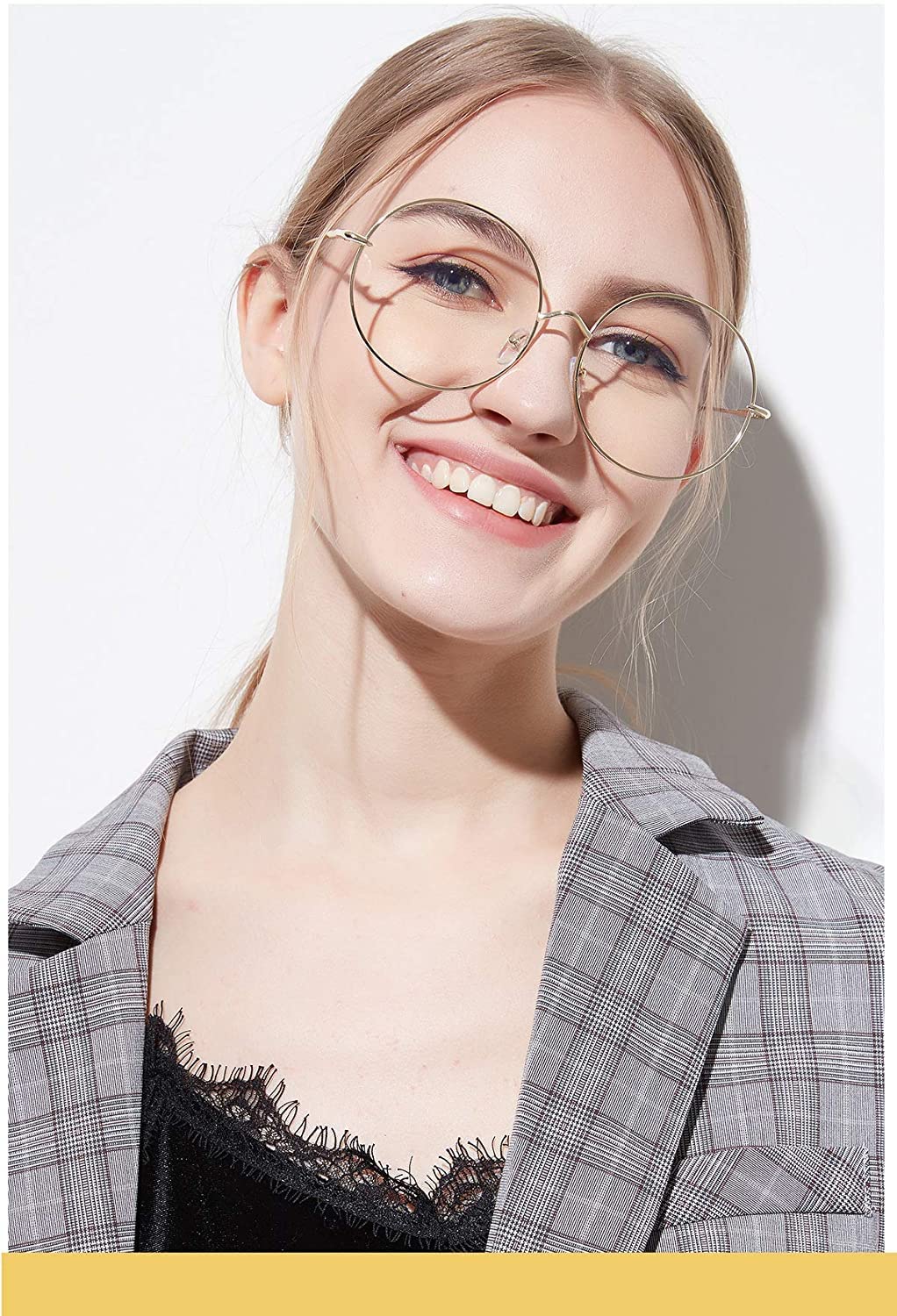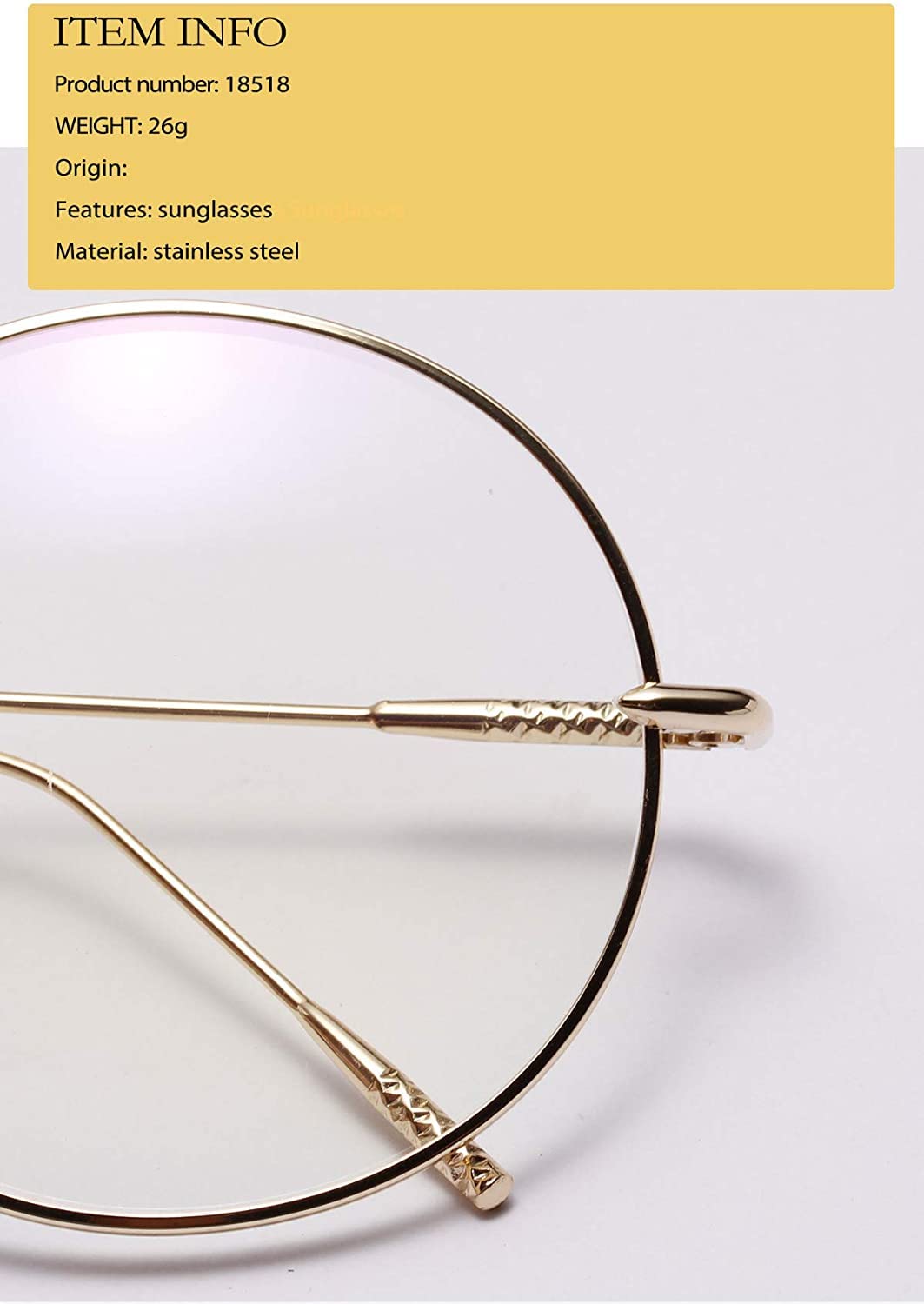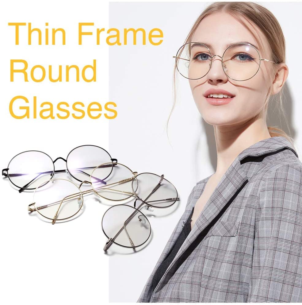 [Morydovs] 大きめ 丸メガネ 華奢 ステンレス フレーム 伊達メガネ 眼鏡 サングラス (ゴールド) [並行輸入品]