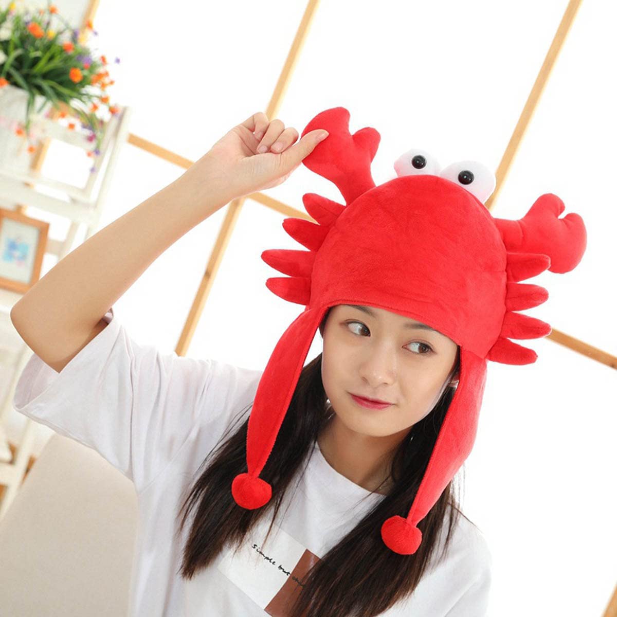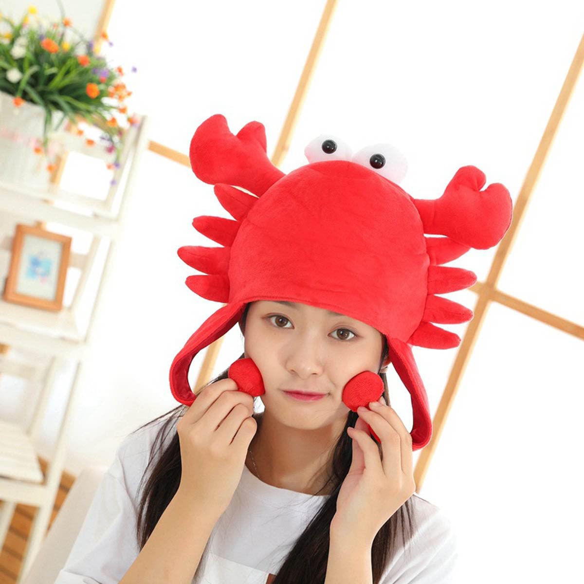 カニ キャップ 帽子 かぶりもの コスプレグッズ ぬいぐるみ ヘッドギア 髪飾り 着ぐるみ ふわふわ 可愛い 仮装 暖かい 写真撮影 おもしろグッズ ハロウィン イベント パーティーグッズ プレゼント 男女兼用 赤い