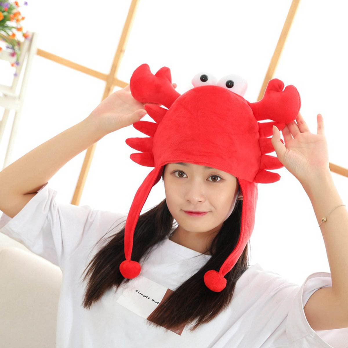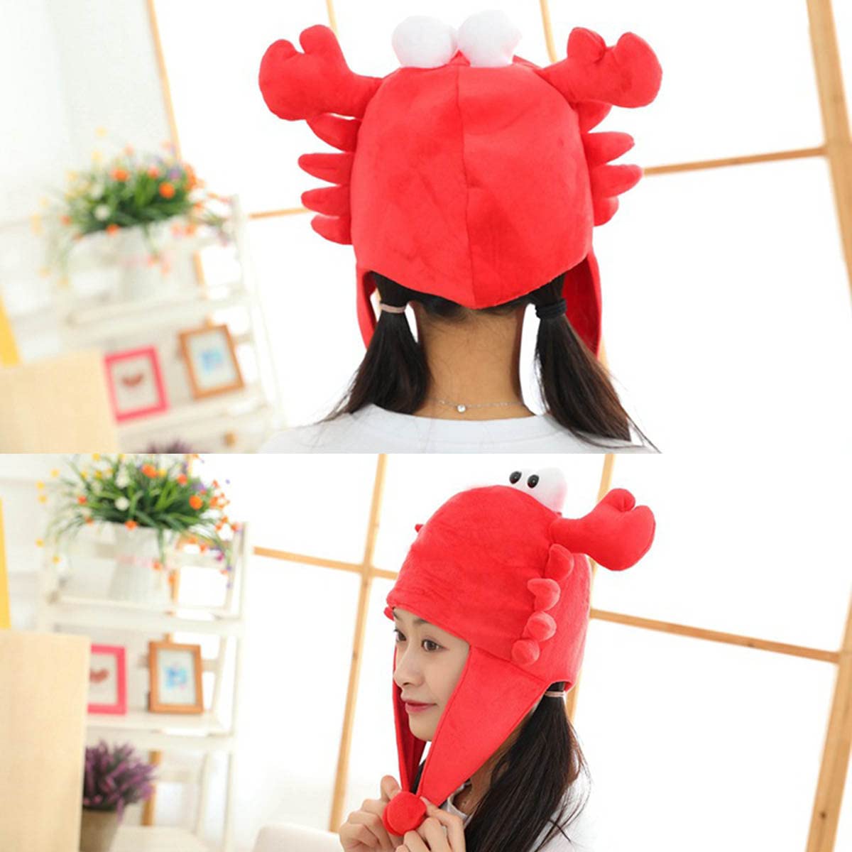 防寒対策:かわいいカニの被り物、肌触りが柔らかくて、暖かくて、着心地がいい。耳先まで覆われる暖かい仕上げなので、冬にお出かけ用の防寒帽子としてもオススメ!