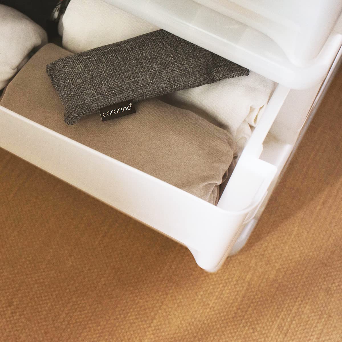 下駄箱を開けた時にもわっと漂うあのニオイ。足のニオイが人一倍やんちゃなご家族がいれば尚更ですよね。かくいう私も学生時代は相当ひどく(大人になったらなくなりましたよ!)、毎日ローファーに消臭スプレーを振り撒き、晴れの日であれば玄関に立てかけ、雨の日であればなるべく除湿剤の近くに置くなど涙ぐましい努力をしていた記憶があります。 そんな当時の私に心から勧めてあげたいと思ったcararinoの天然竹炭バッグ。竹炭がもつ自然の力で靴の中をしっかり消臭・除湿してくれます。化学薬品が一切含まれていないので身体にもやさしく、文句なしです。