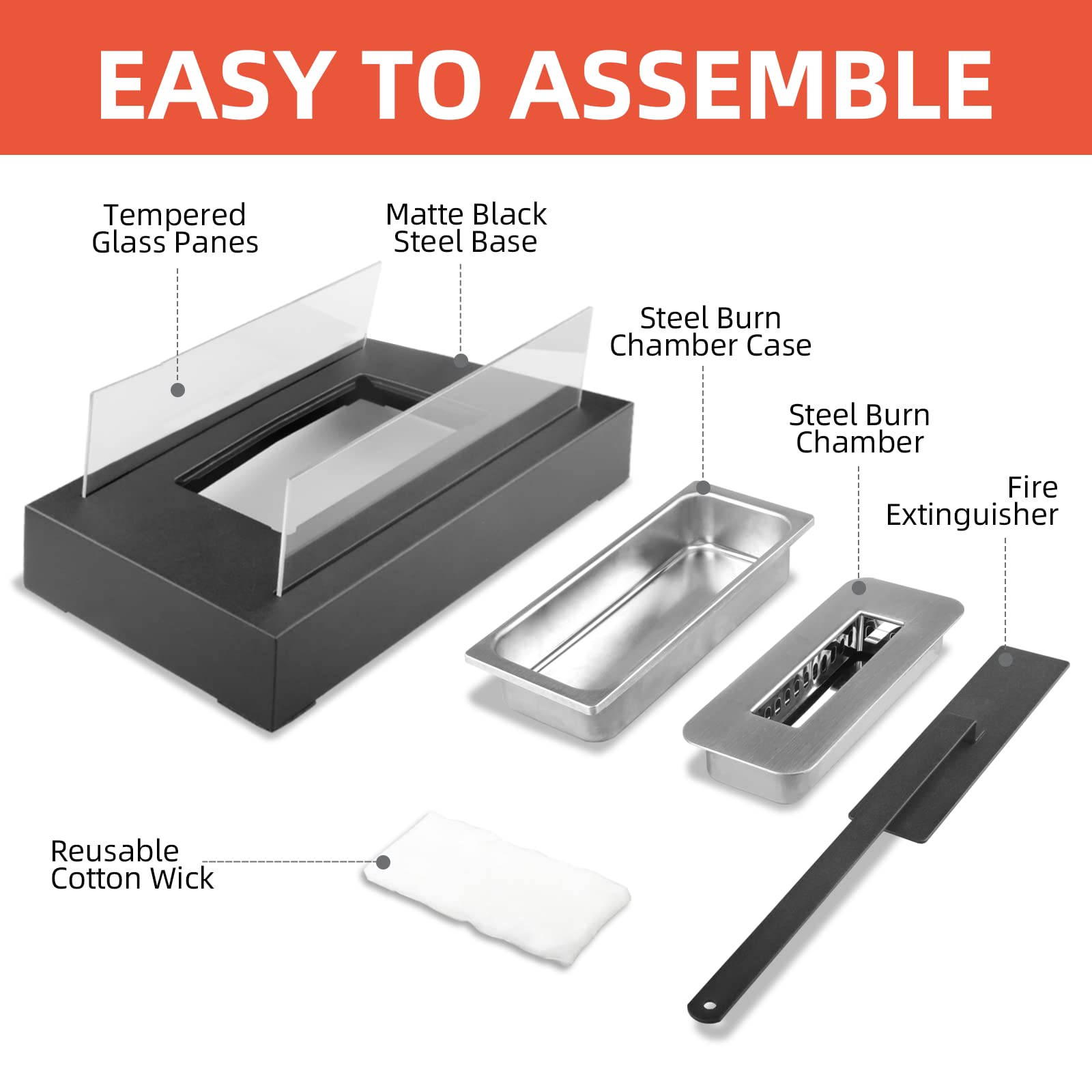 プレミアム暖炉:この卓上ファイヤーピットは、頑丈で無毒な304ステンレススチール製で、少なくとも数年間使用できます。KORNIFULは1年間の交換が可能です。 頑丈なスチールベースと強化ガラスパネルで設計されており、工具なしで組み立てられます。燃料を加えて点火するだけで、踊る炎が出ます。