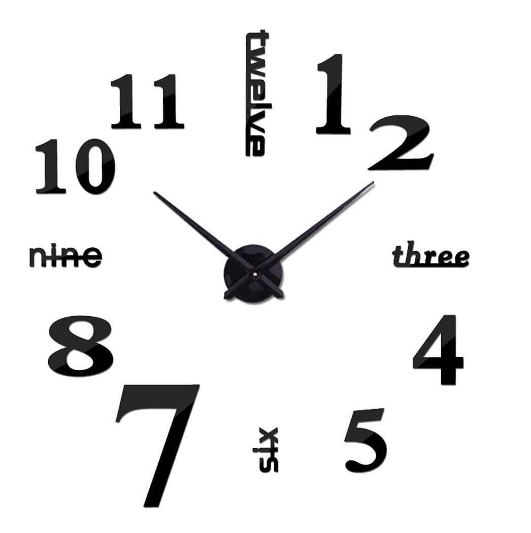 掛け時計 壁掛け時計 壁掛け時計 3D DIYアクリルミラーステッカー壁掛け時計家の装飾リビングルームクォーツ針 壁時計 時計 (Color : Black, Size : 24 inch)