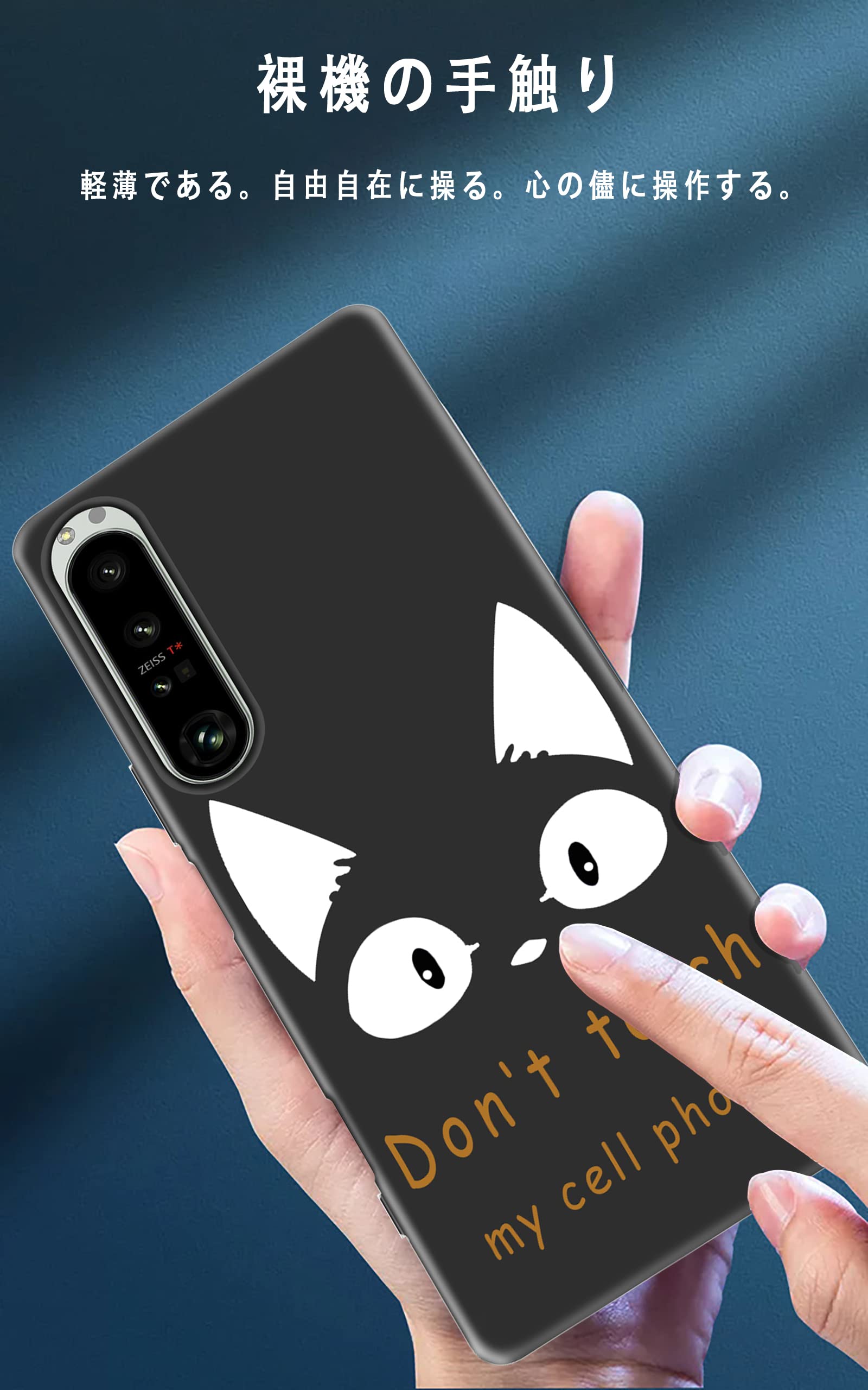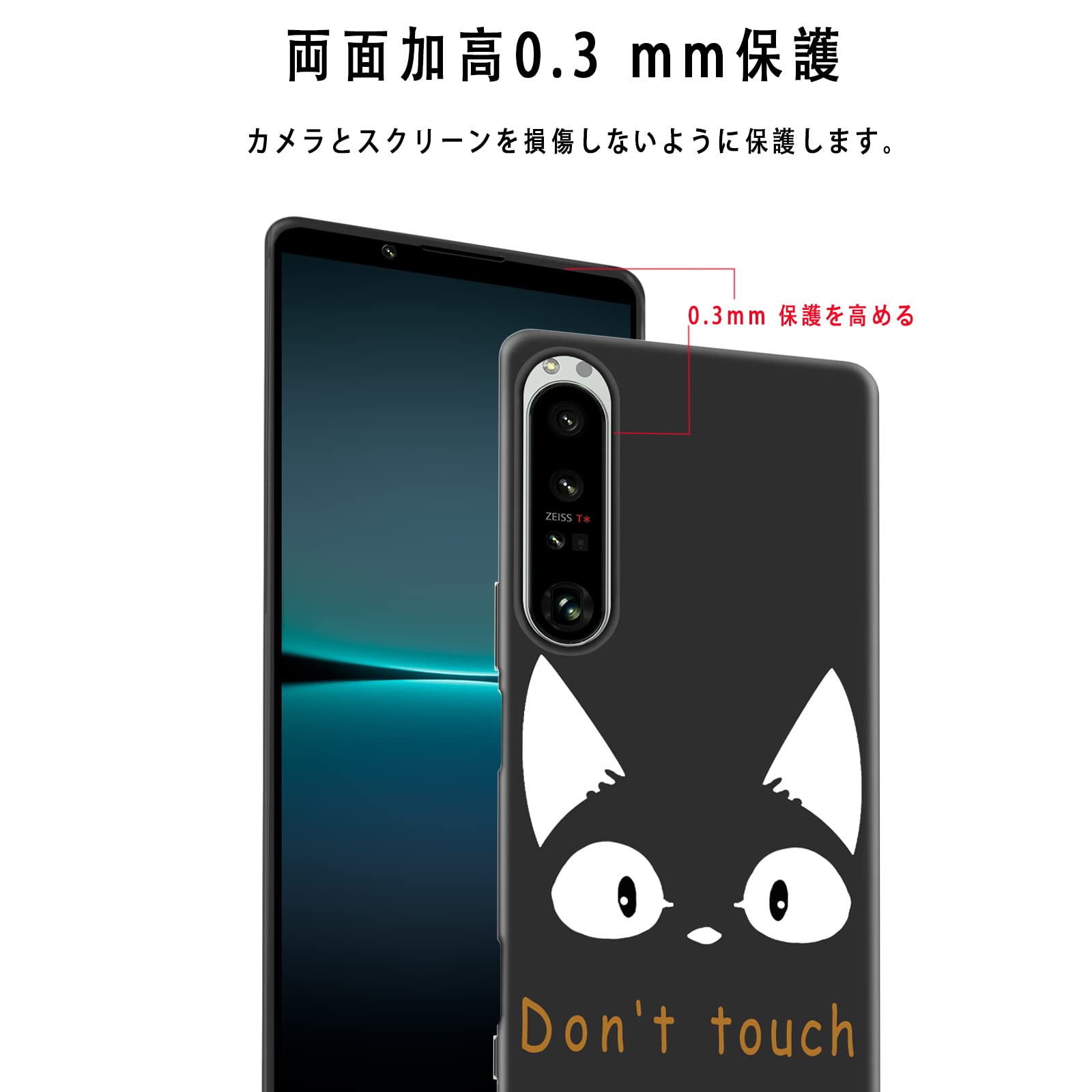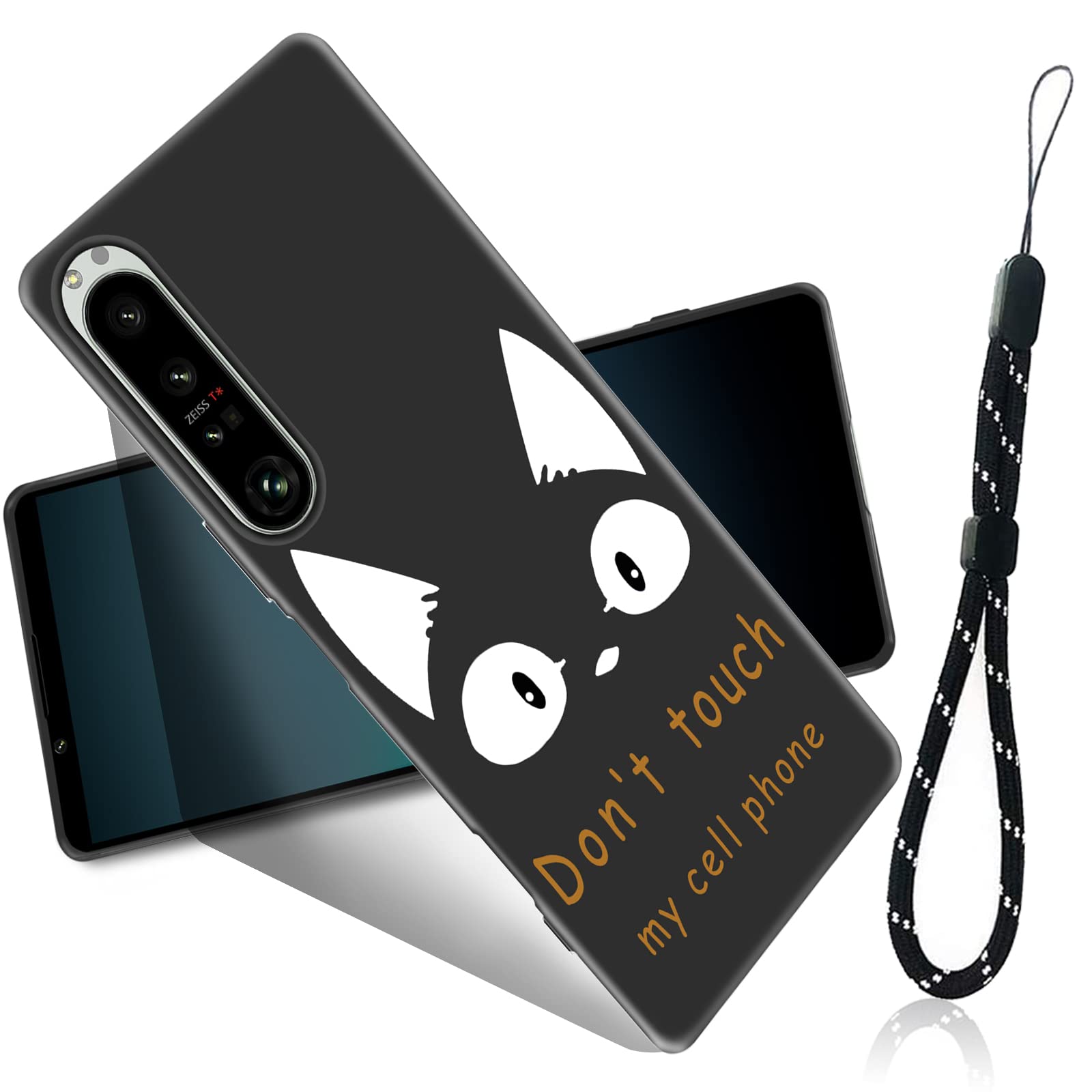 FOR Sony Xperia 1 IV SO-51C / SOG06 用のケース SO-51C / SOG06 用のケース 薄型 軽量 衝撃吸収 TPU ストラップ付き 背面 創意 ブラック かわいい パターン 携帯 ケース FOR Xperia 1 IV 用の全面保護 ケース 落下防止 PCduoduo (Don't touch)