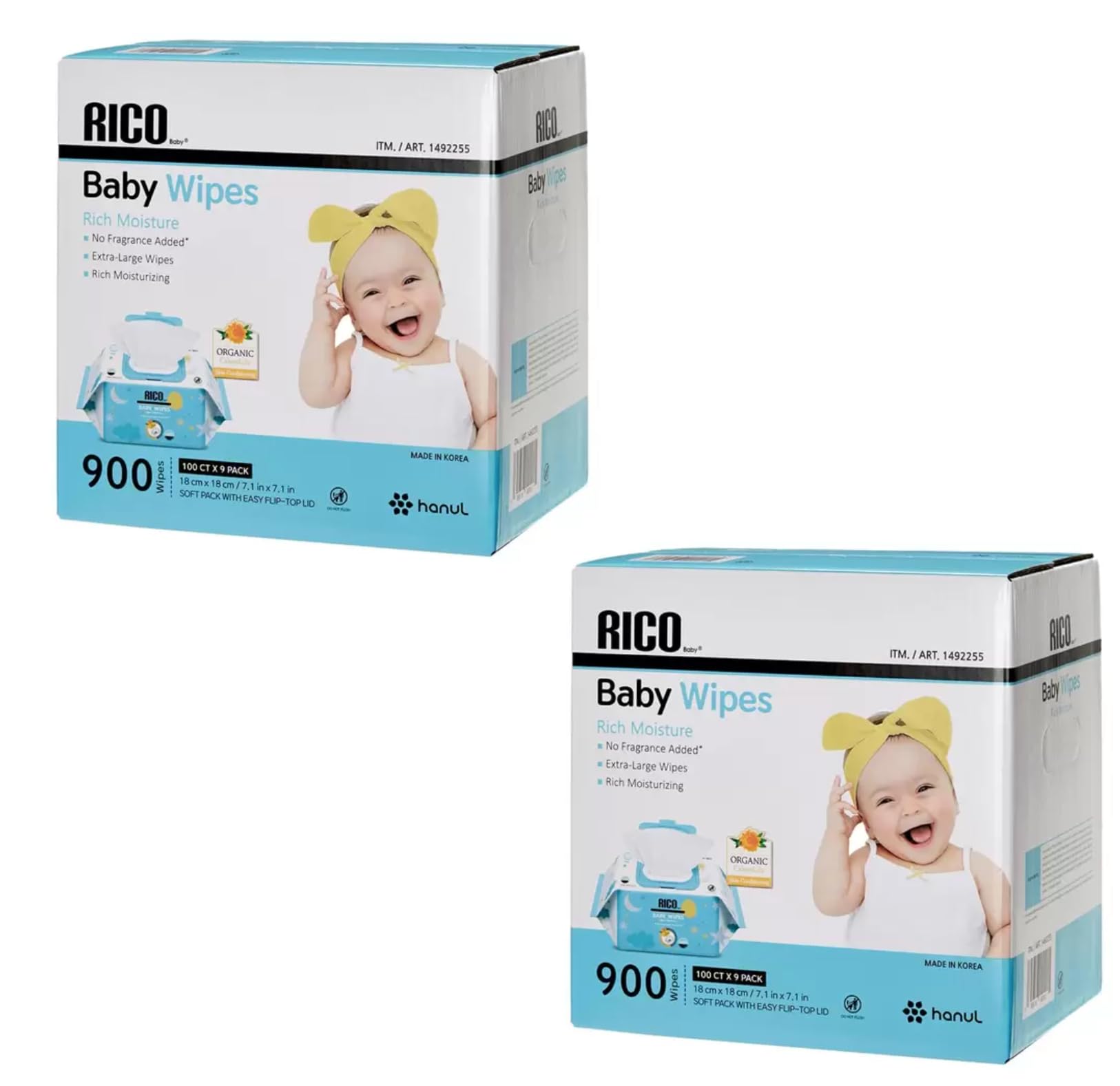 コストコ RICO 赤ちゃん用 おしりふき 900枚 無香料 ウェットタイプ COSTOCO 開閉が容易な蓋付きの個包装パック×2箱 + lollolマイクロファイバークロス(商標登録済)