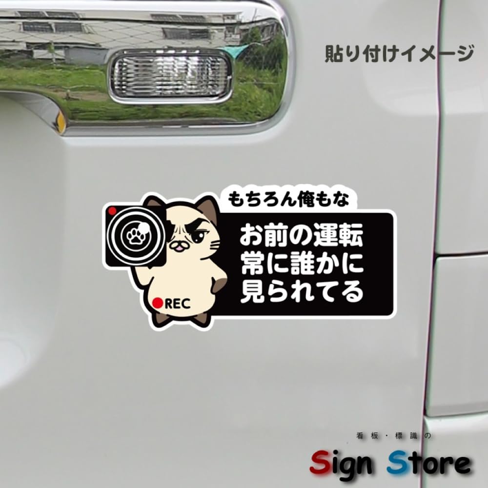 SignStore カメラを構える猫の交通安全ステッカー 8cm×16cm おしゃれ オリジナル シール かわいい 標識 看板 ラベル ステッカー 車 日本製 car_character_01 (太まゆA)