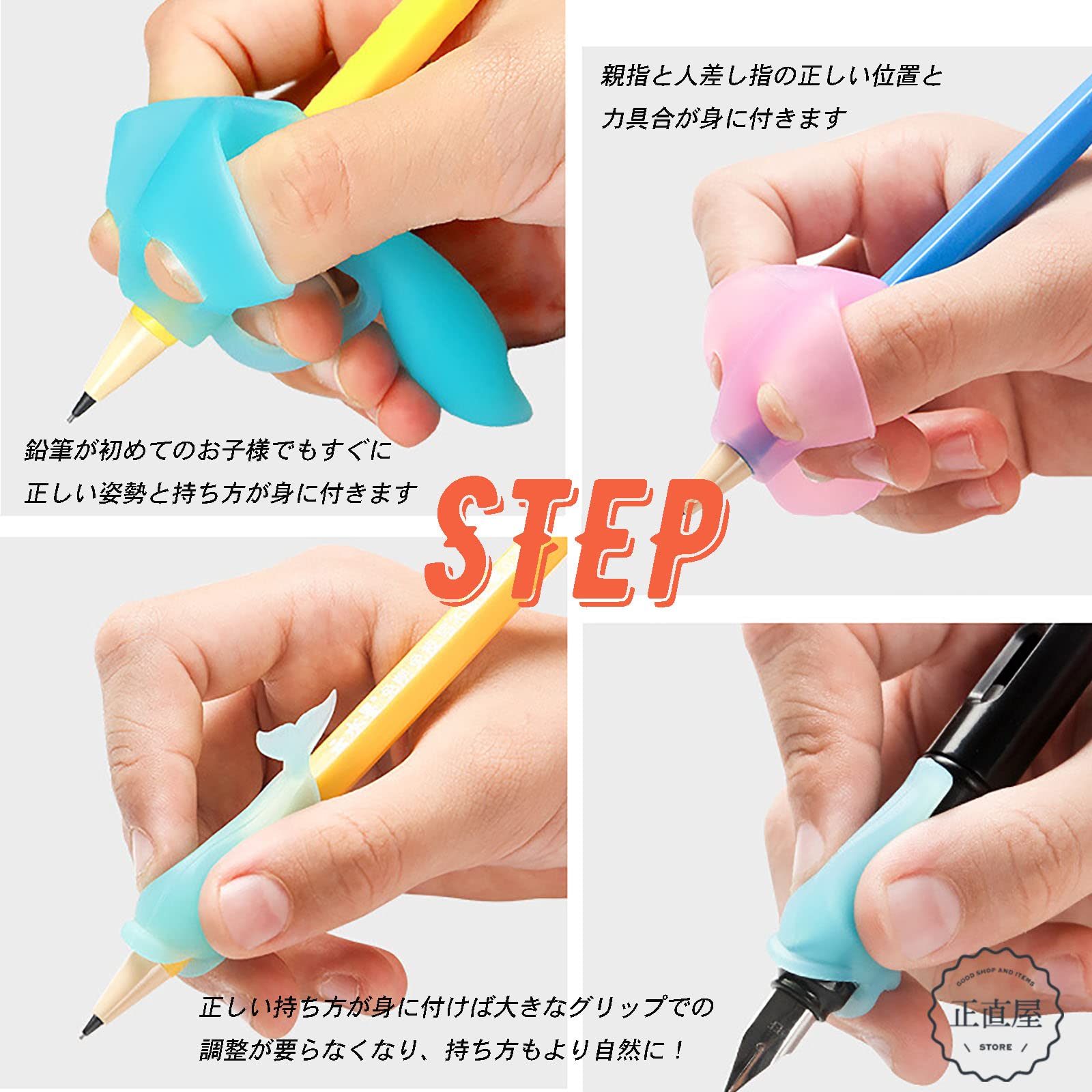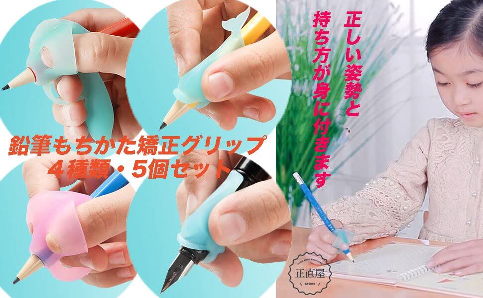えんぴつ持ち方矯正グリップ、4種類5個セットのペングリップです。