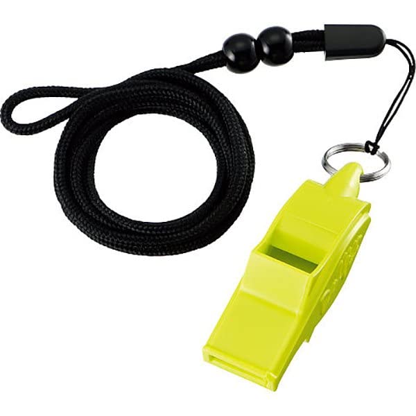 音の大きさ: 109dB( 1m)、※大きな音を出せるように設計していますので、軽く吹いた時に音がかすれることがあります。<br><br>素材:ABS樹脂<br>対象:メンズ・ユニセックス<br>付属品:ロープ(調節リング2個)付き<br>生産国:日本製<br>カラー:イエロー