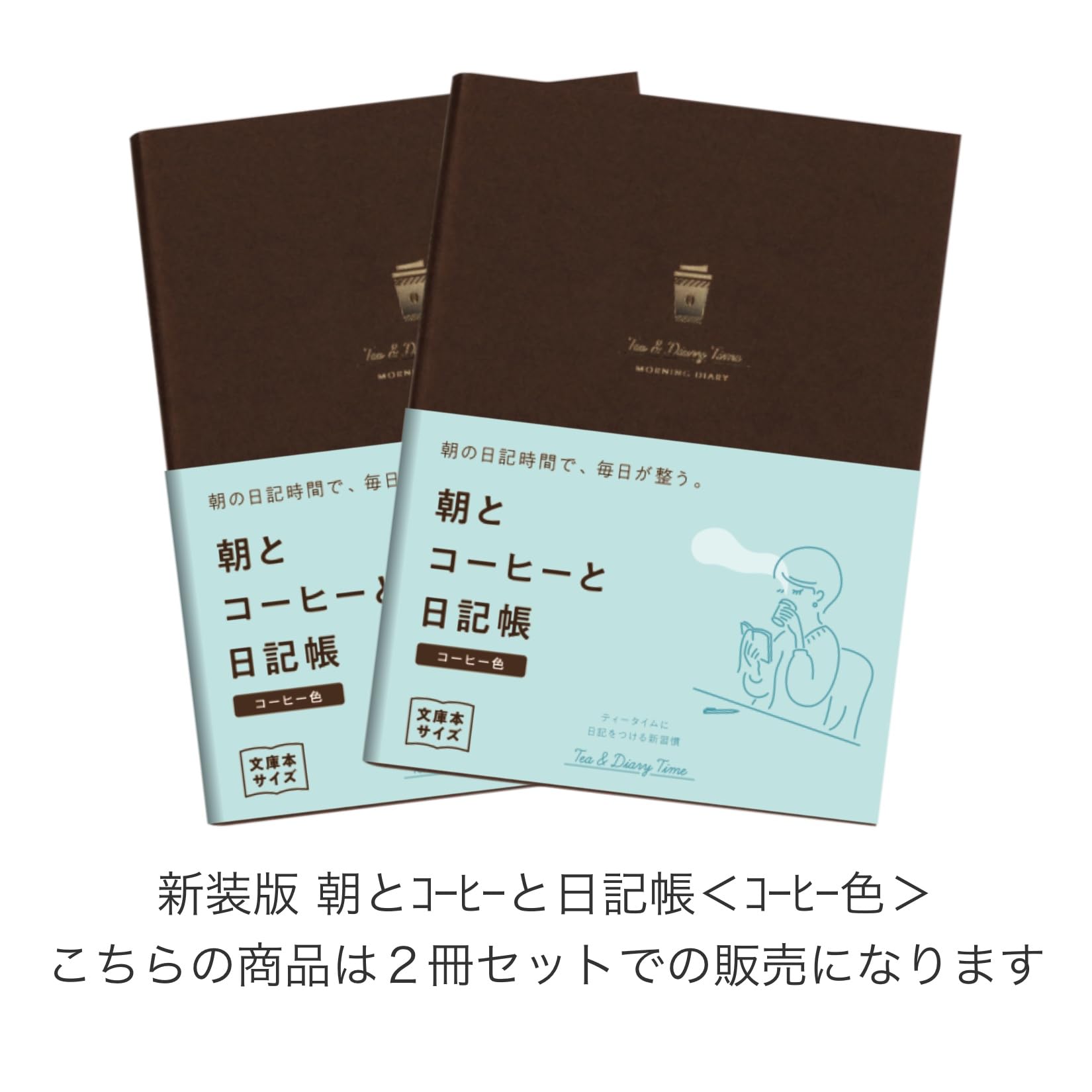書く時間、シーンを想定した日記「ティータイムにつける日記」シリーズの文庫本サイズ。<br> 朝の日記時間で、毎日が整う「朝とコーヒーと日記帳」。<br> 一日の終わりの、デトックスタイム「夜とカフェオレと日記帳」。<br> 一週間がんばった自分に、リラックス習慣「週末と紅茶と日記帳」。それぞれのシーンにあったレイアウトになっています。<br> 巻頭には「やりたいことリスト」の付録付。<br><br> <商品のラインナップ><br> 新装版 朝とコーヒーと日記帳<コーヒー色> R2269 2冊セット<br> 新装版 朝とコーヒーと日記帳<めざめ色> R2289 2冊セット<br> 新装版 夜とカフェオレと日記帳<カフェオレ色> R2270 2冊セット<br> 新装版 夜とカフェオレと日記帳<夜空色> R2290 2冊セット<br> 新装版 週末と紅茶と日記帳<紅茶色> R2271 2冊セット<br> 新装版 週末と紅茶と日記帳<くつろぎ色>R2291 2冊セット
