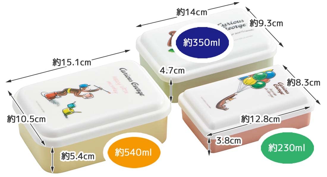スケーター(Skater) 抗菌 シール容器 保存容器 3個セット おさるのジョージ クラッシック 日本製 SLUS3AG-A