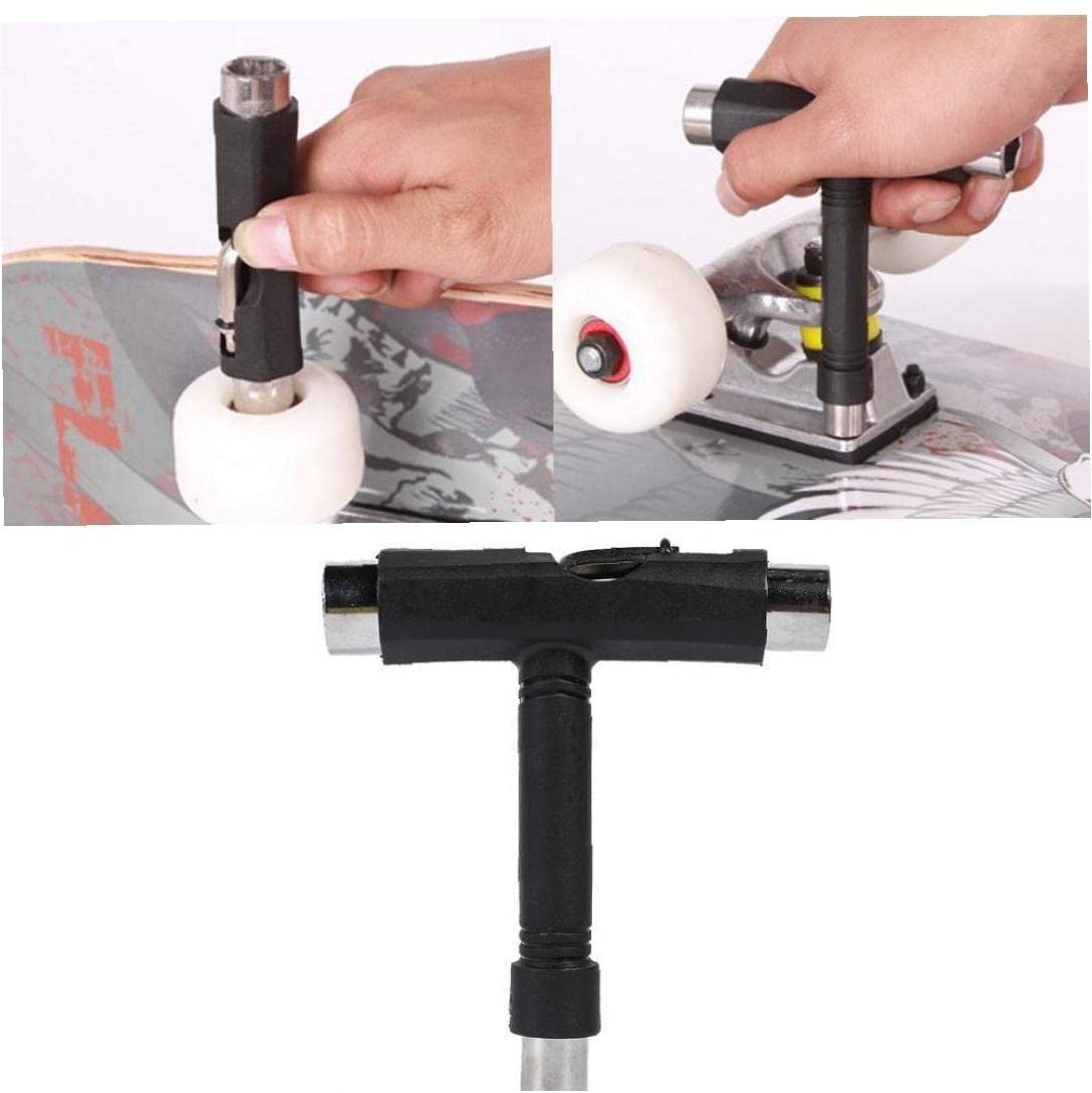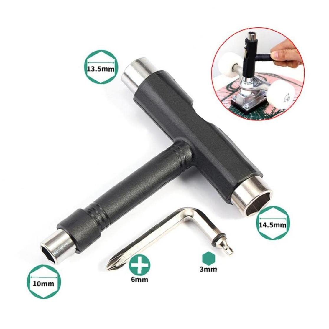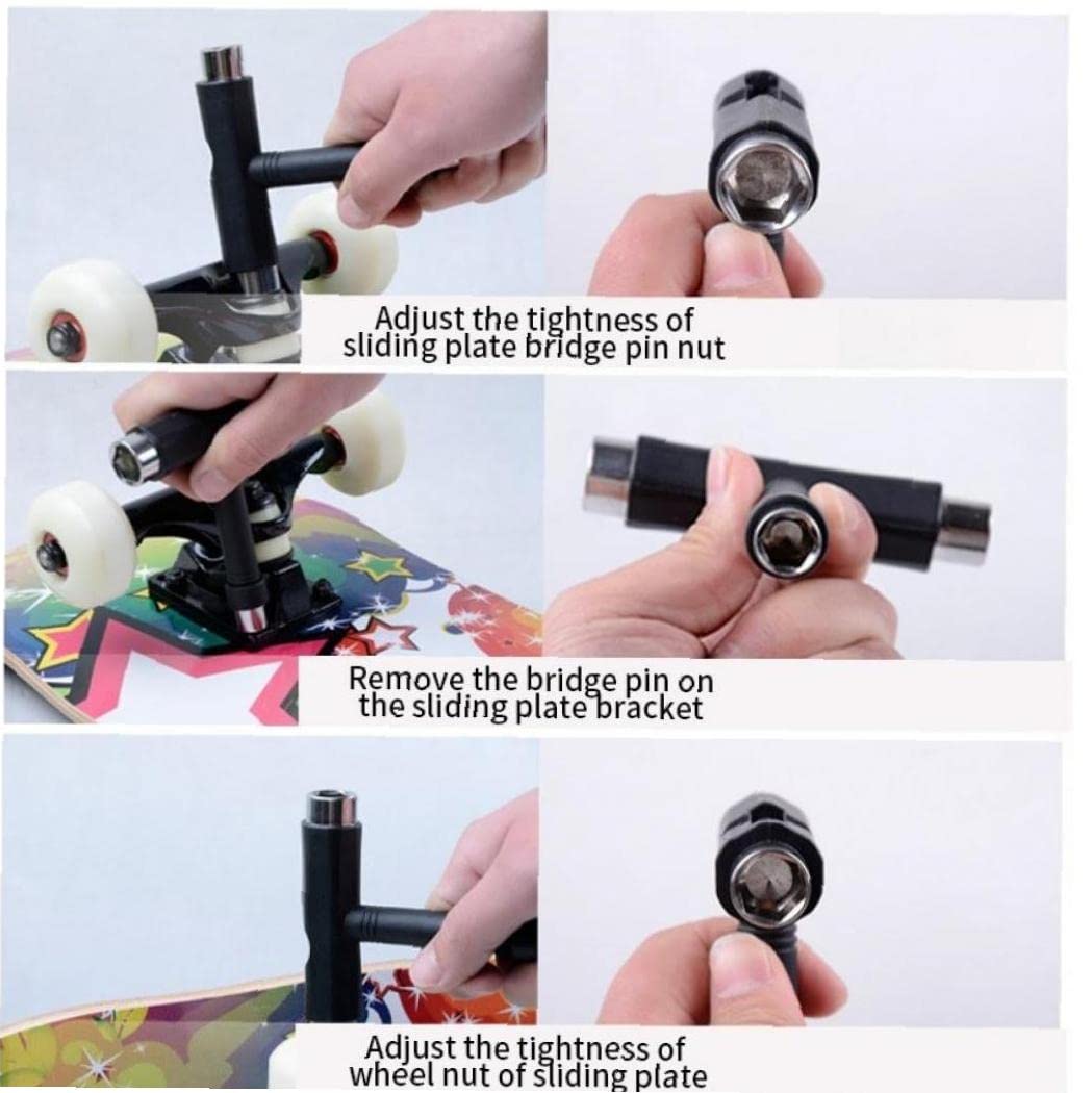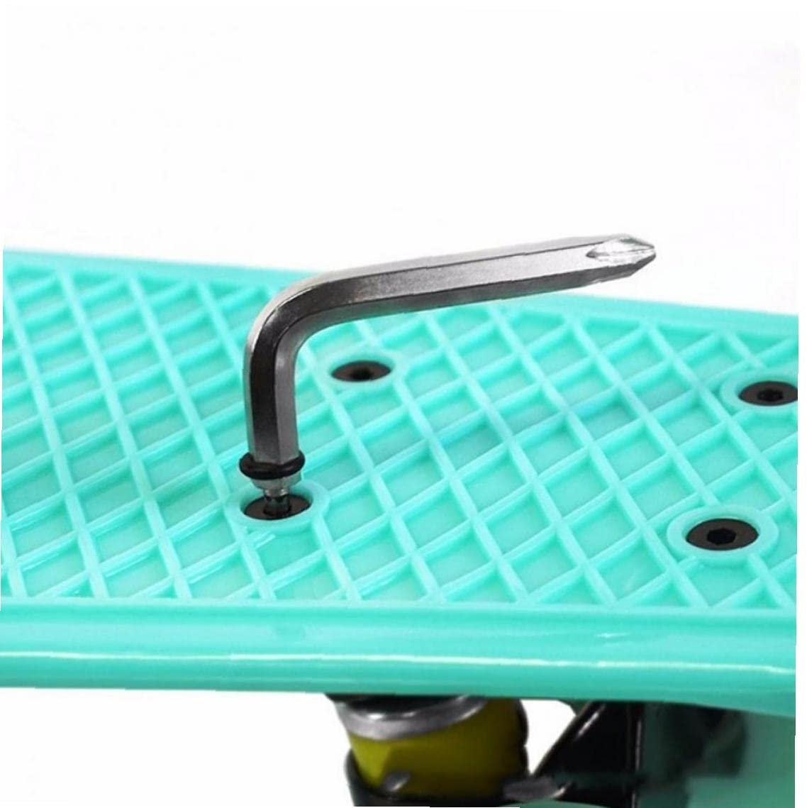 【マルチファンクションツール】これは多機能スケートツールです。 T字型のスケートツールを使用すると、スクーター上の3つの異なる仕様のナットを調整できます。 L字型のドライバーはネジを固定または取り外すことができます。これは、スケートボードのアセンブリを完成させるのに非常に適しています