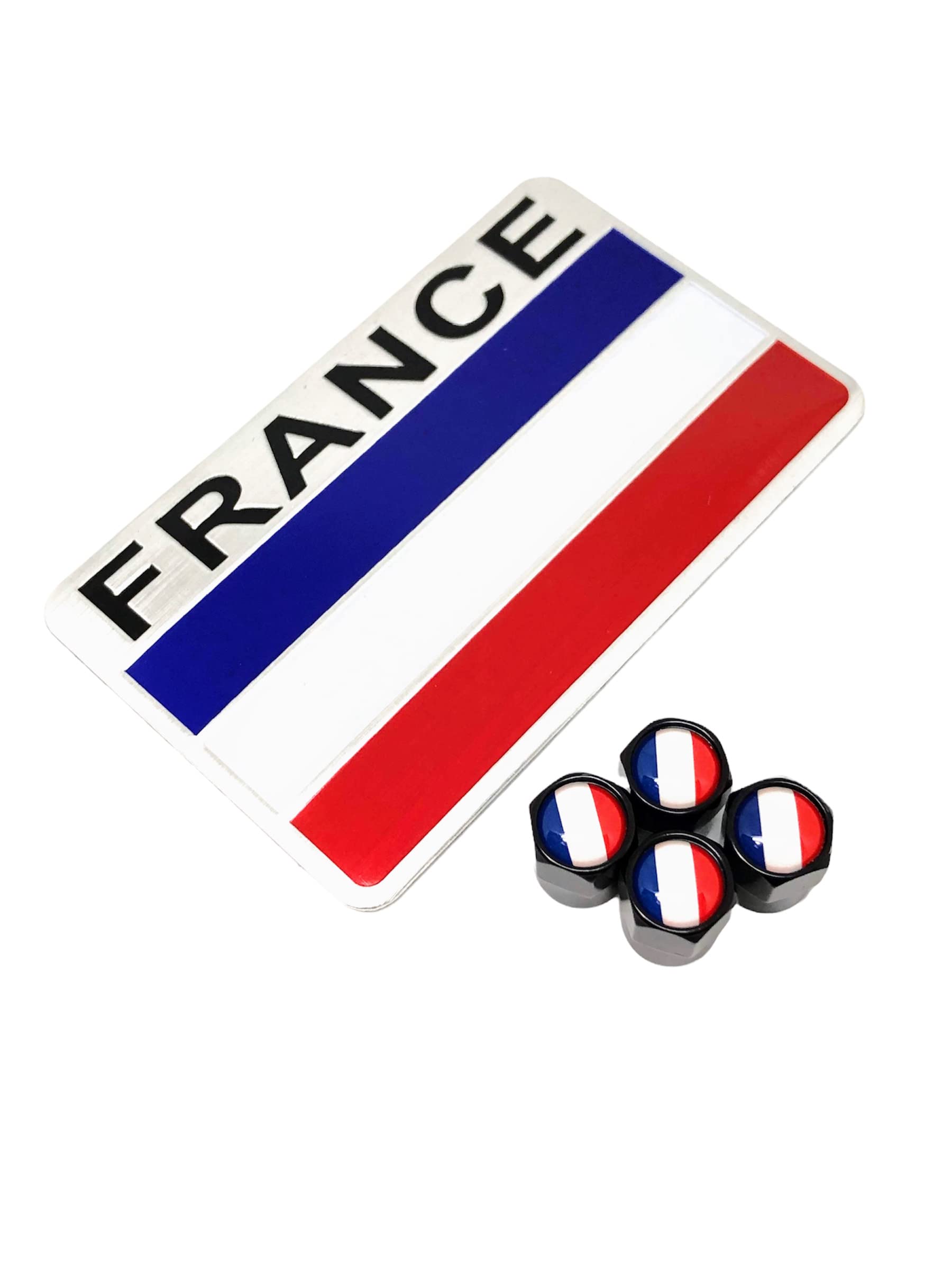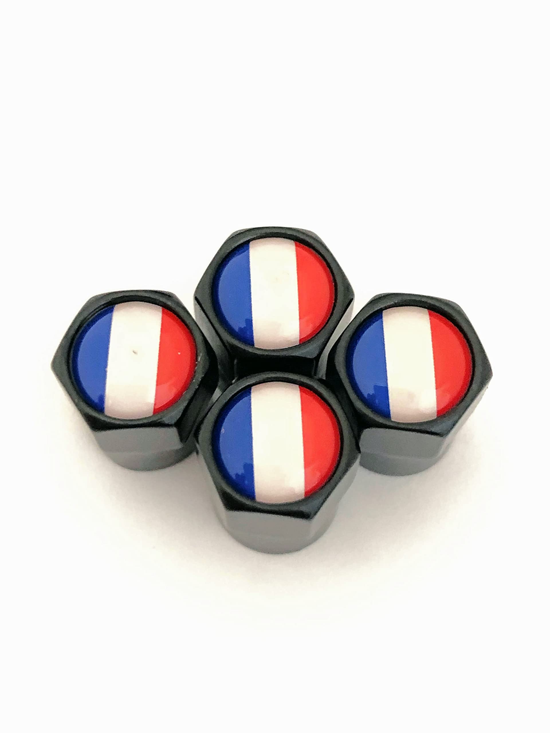 【ノーブランド品】D 黒 フランス 国旗柄 エンブレム バルブキャップ セット トリコロール フェンダー ステッカー