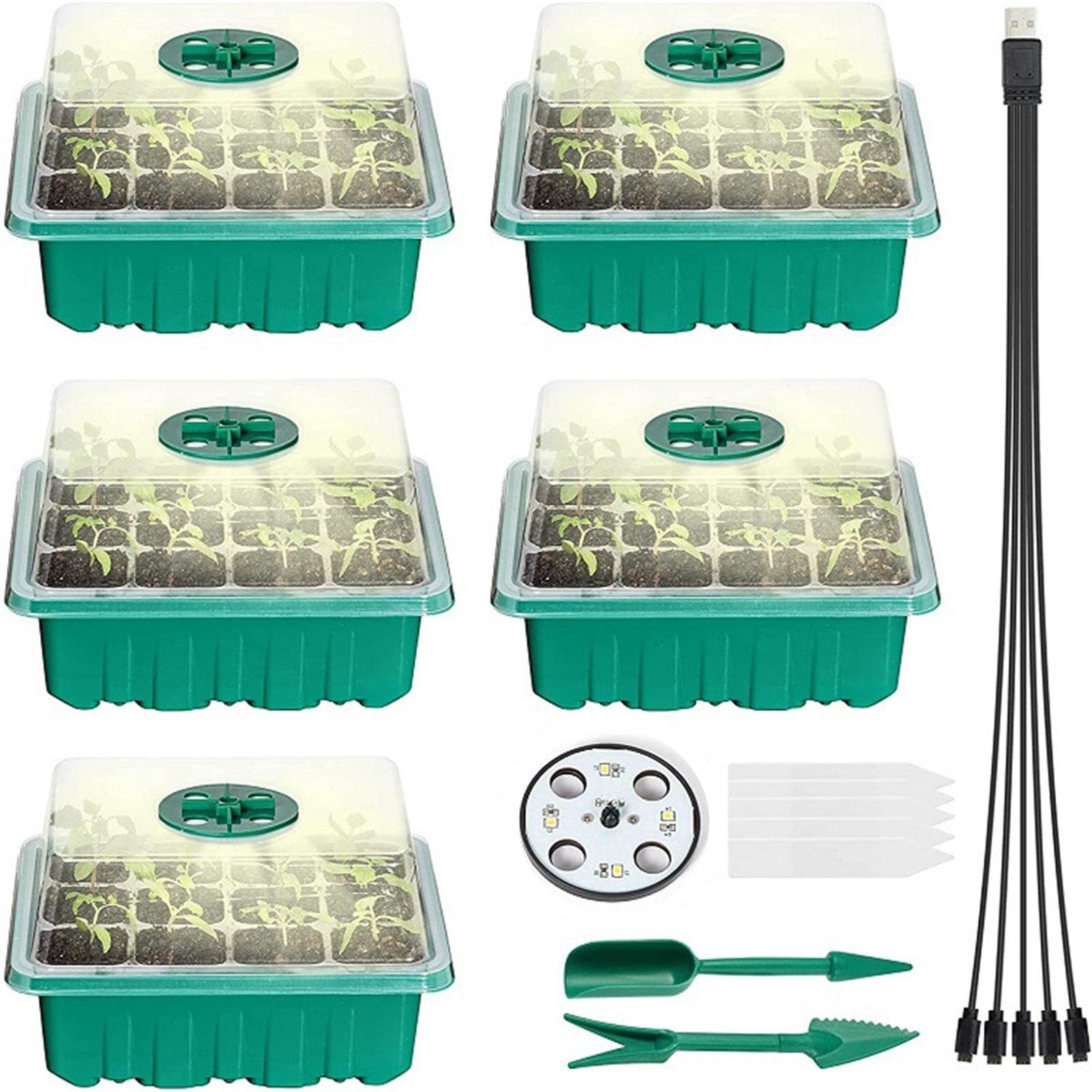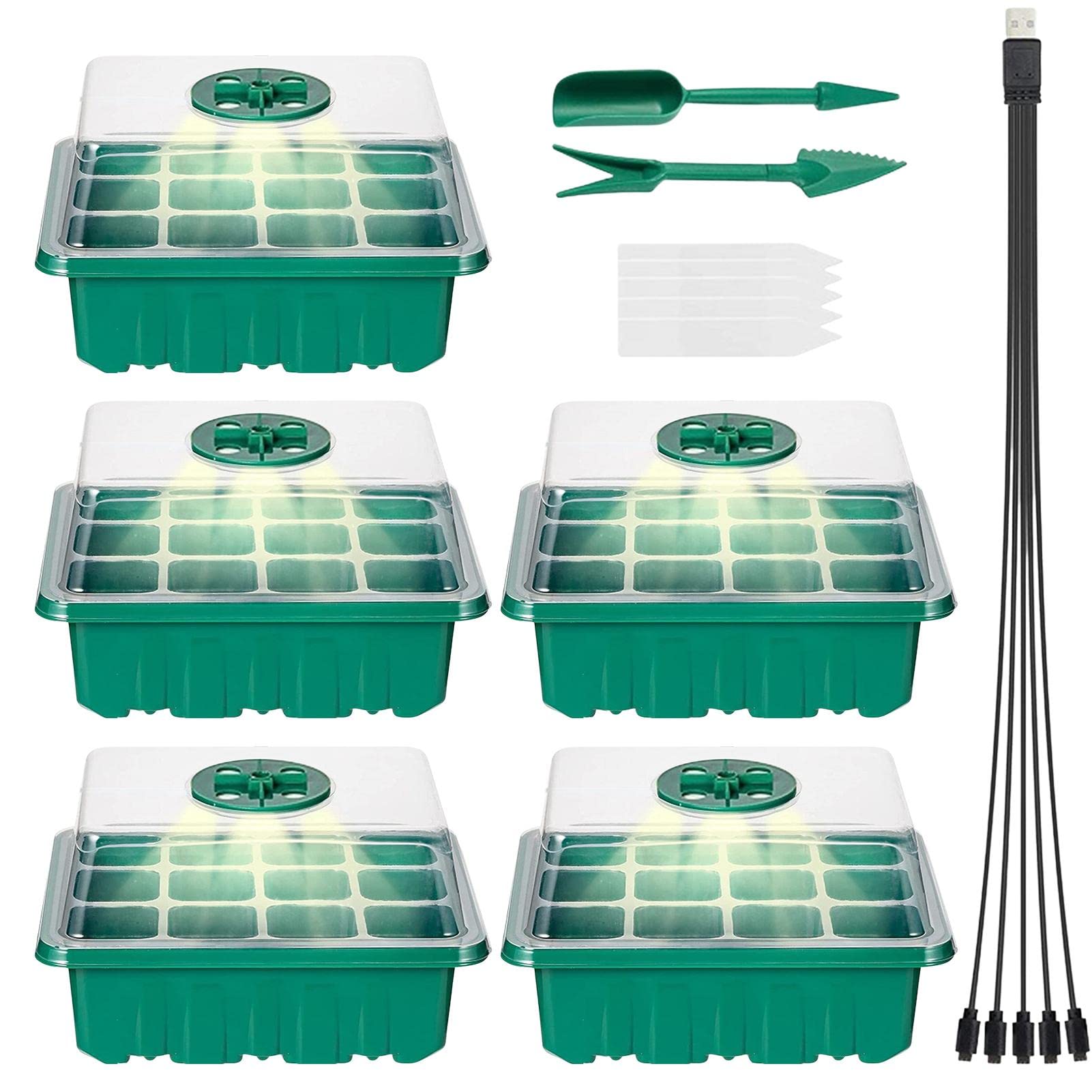 シードスターターキット,グローライト付き5パックシードスターターキット - 湿度ドーム付き苗スタータートレイ、屋内園芸植物発芽トレイ iyoki