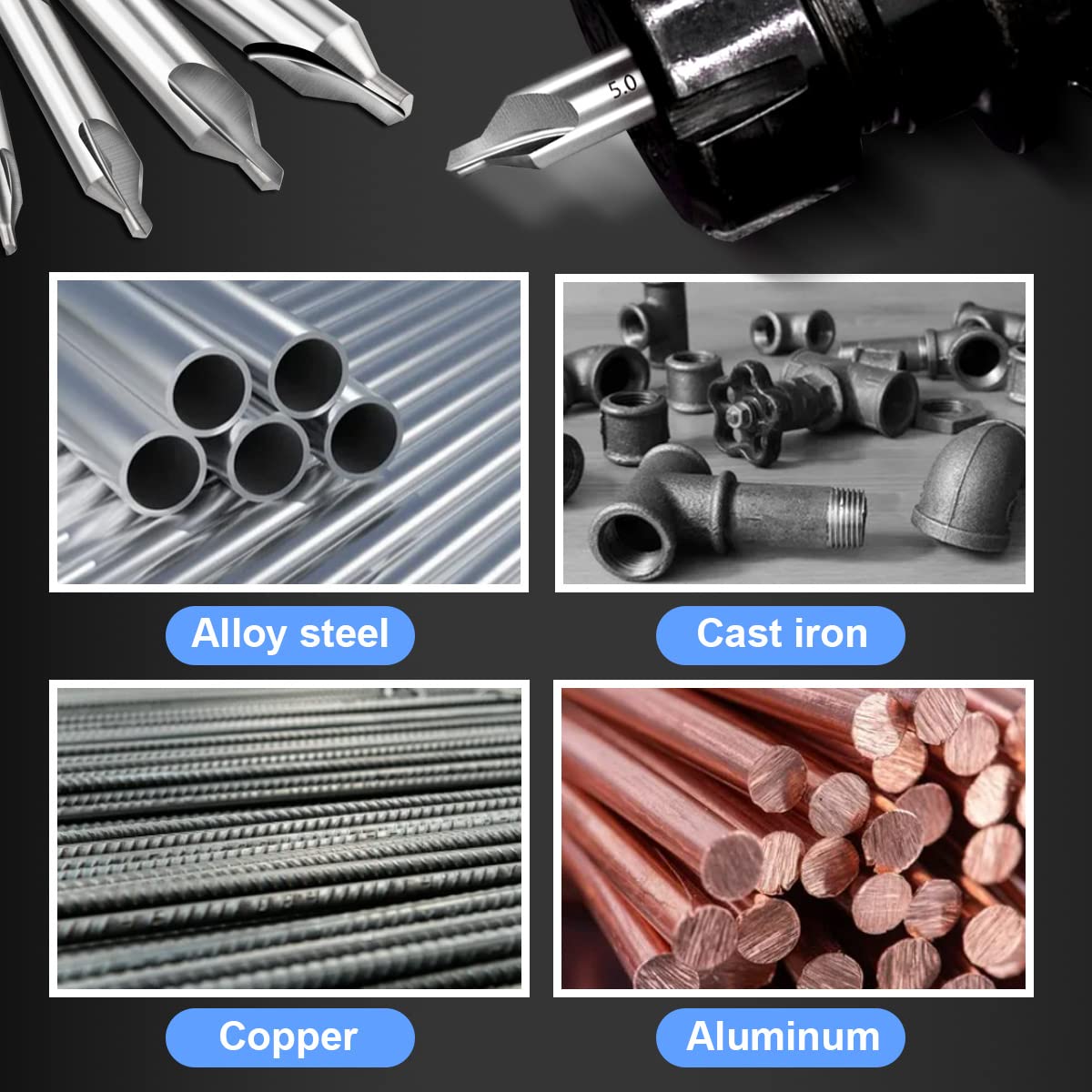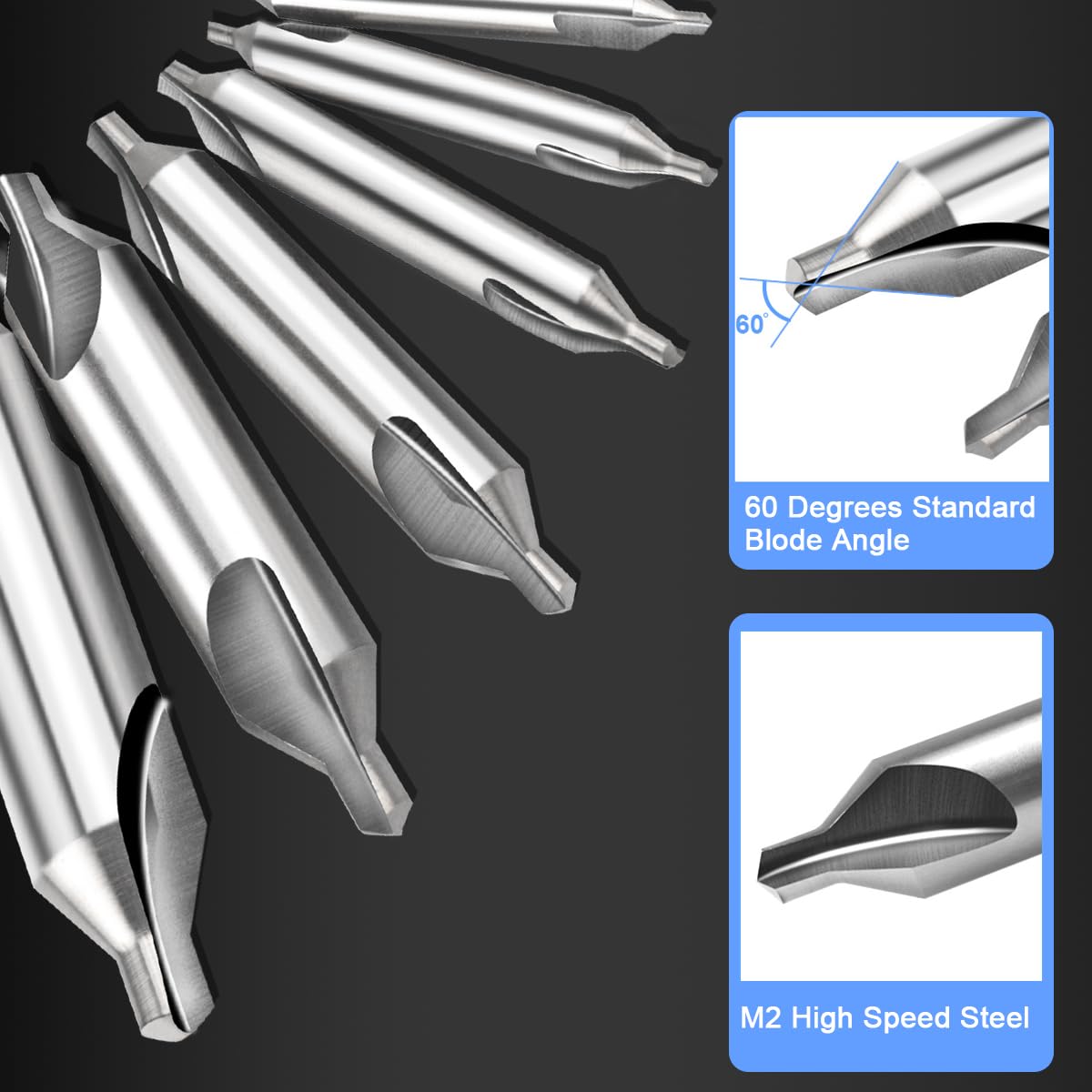60度の先端角度 - 中央のドリル先端は正確な60度で、一般的な材料のセンタリングホールや皿シンクの処理に使用できます。 正確なセンタリング穴を開ける際の素晴らしいヘルパーになるでしょう。