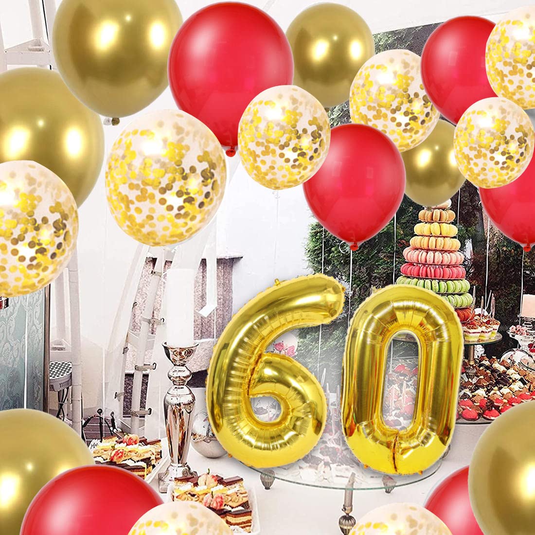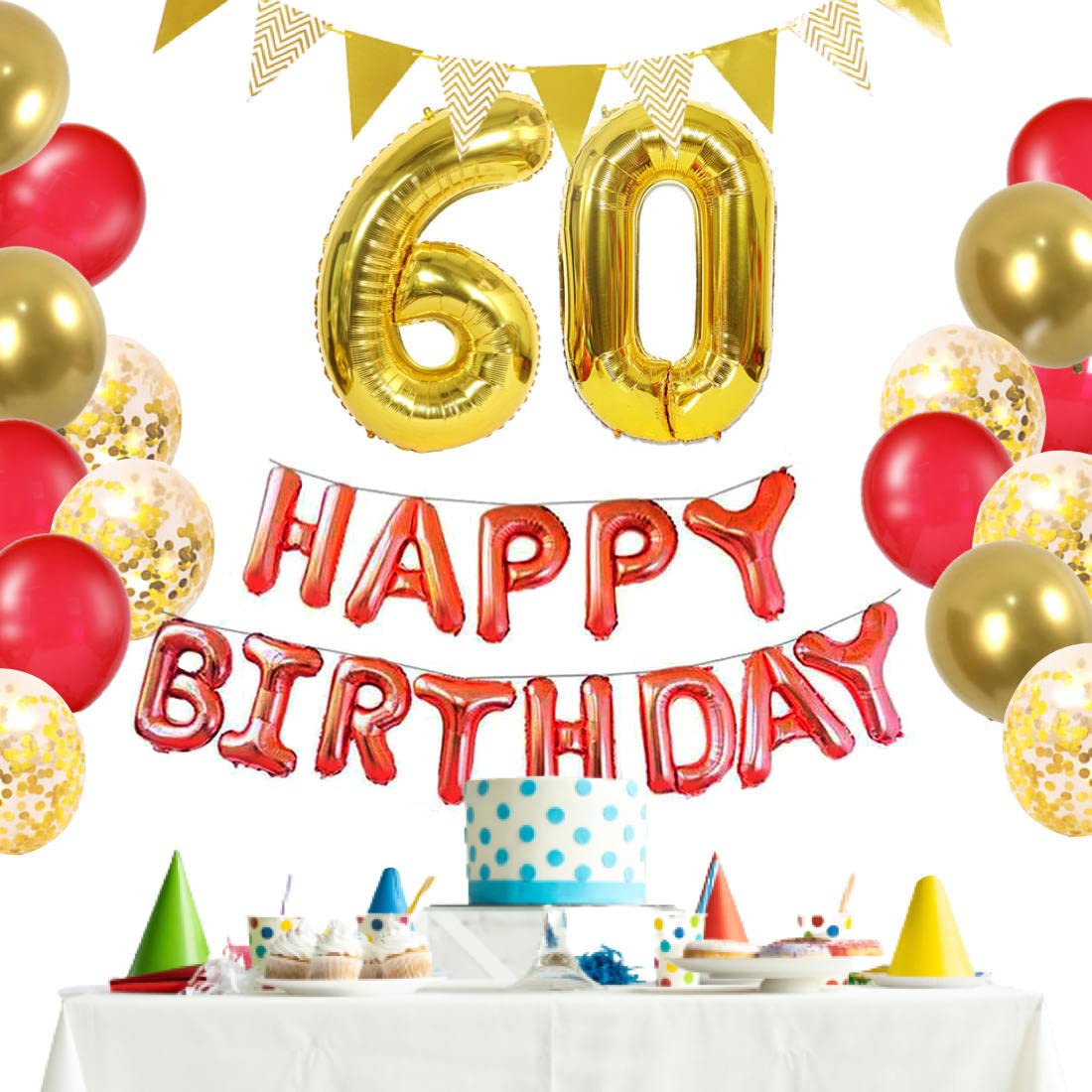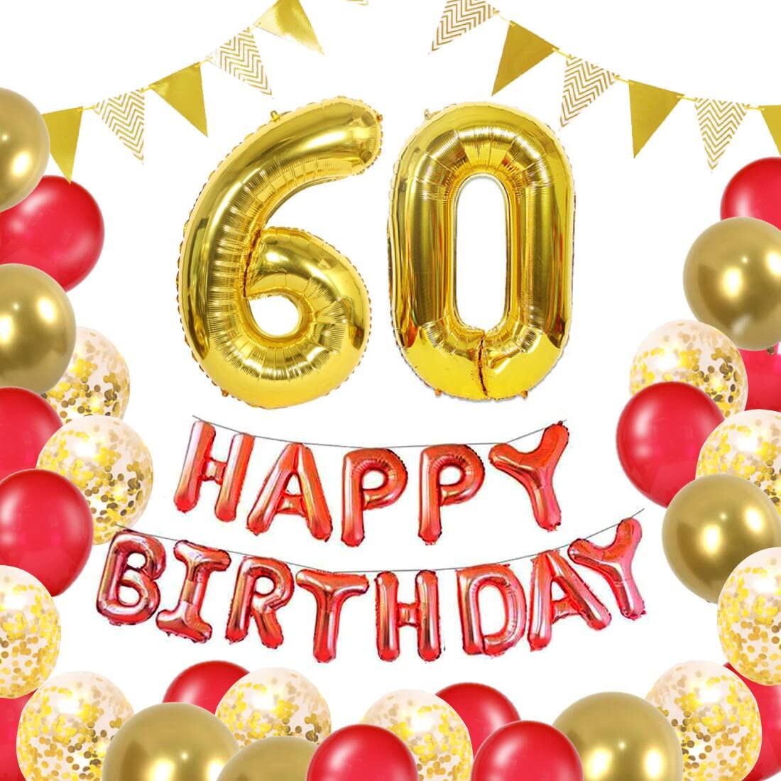 還暦祝い 60歳 数字バルーン 誕生日 飾り付け 大きい 風船 HAPPY BIRTHDAY 赤とゴールド 大人 女性 男性 プレゼント デコレーション バースデーバルーンパーティーお祝い飾り付けセット