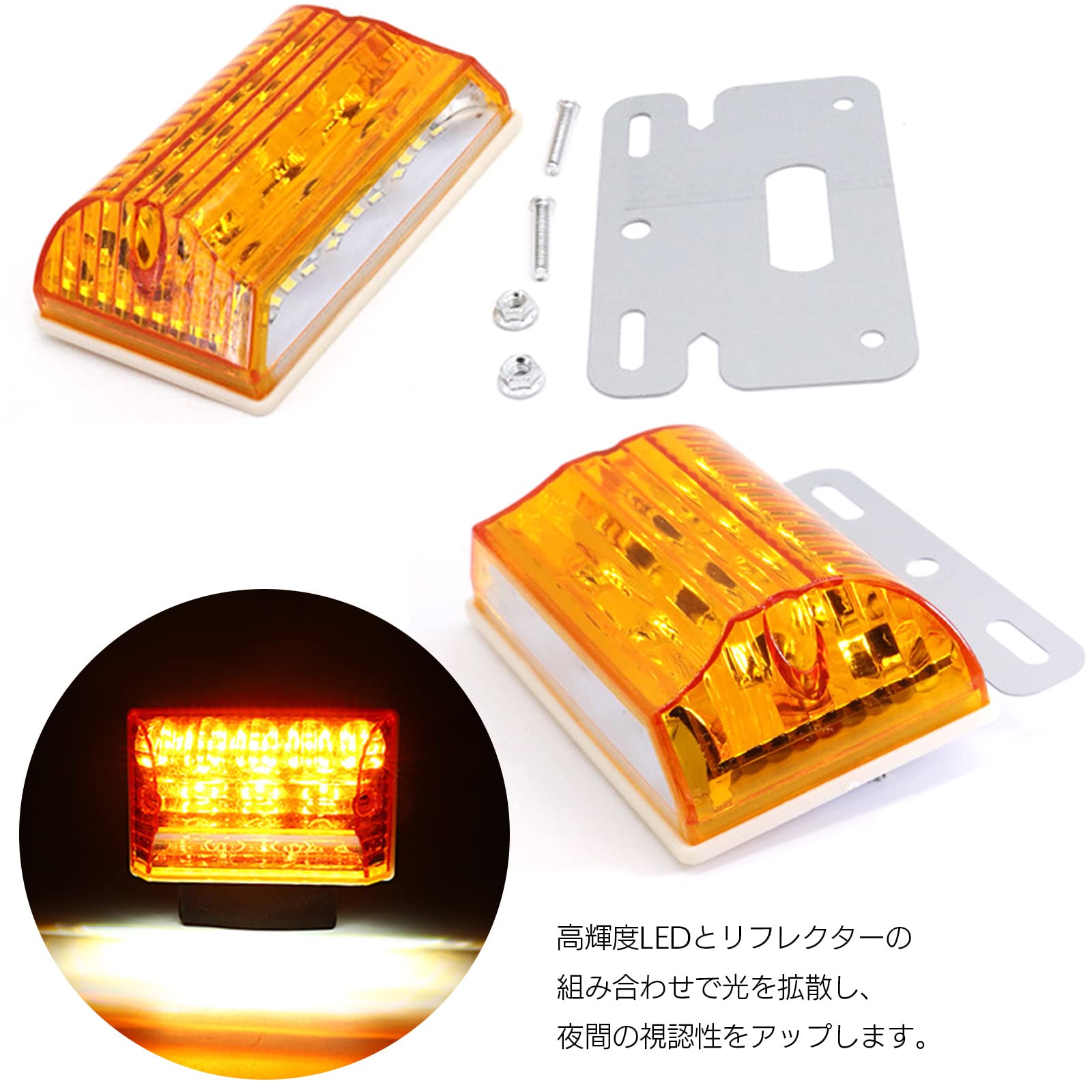 海外輸入品のため、輸送中に細かい傷が生じる場合がございます。また、説明書の付属はございませんので、取り付けは業者や専門の整備士に依頼することを推奨します。高輝度LEDを搭載し、機能性とデザイン性を兼ね備えたサイドマーカーで、より安全でスタイリッシュな車両カスタムをお楽しみください。長寿命設計のLEDを採用しており、消費電力を抑えながらも強い光を放ちます。