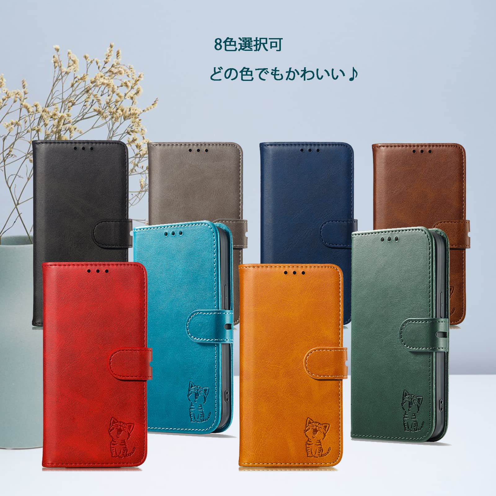 【ユニークなデザイン】シンプルながらも機能性も備わったデザインです。型押しの可愛い猫のモチーフと上品なレザーの組み合わせるケースであり、それに上下に二つのストラップ穴もあり、お好きなタッセルとストラップとかお付けられます、簡単こそクラッシクの上品を引き出せる、手作りの高級感ある色合いでちょっぴり大人なスマホケース。学生にも相応できるし、ワンポイントは笑顔猫であり、この手帳型ケースをギフトとしても最適です。