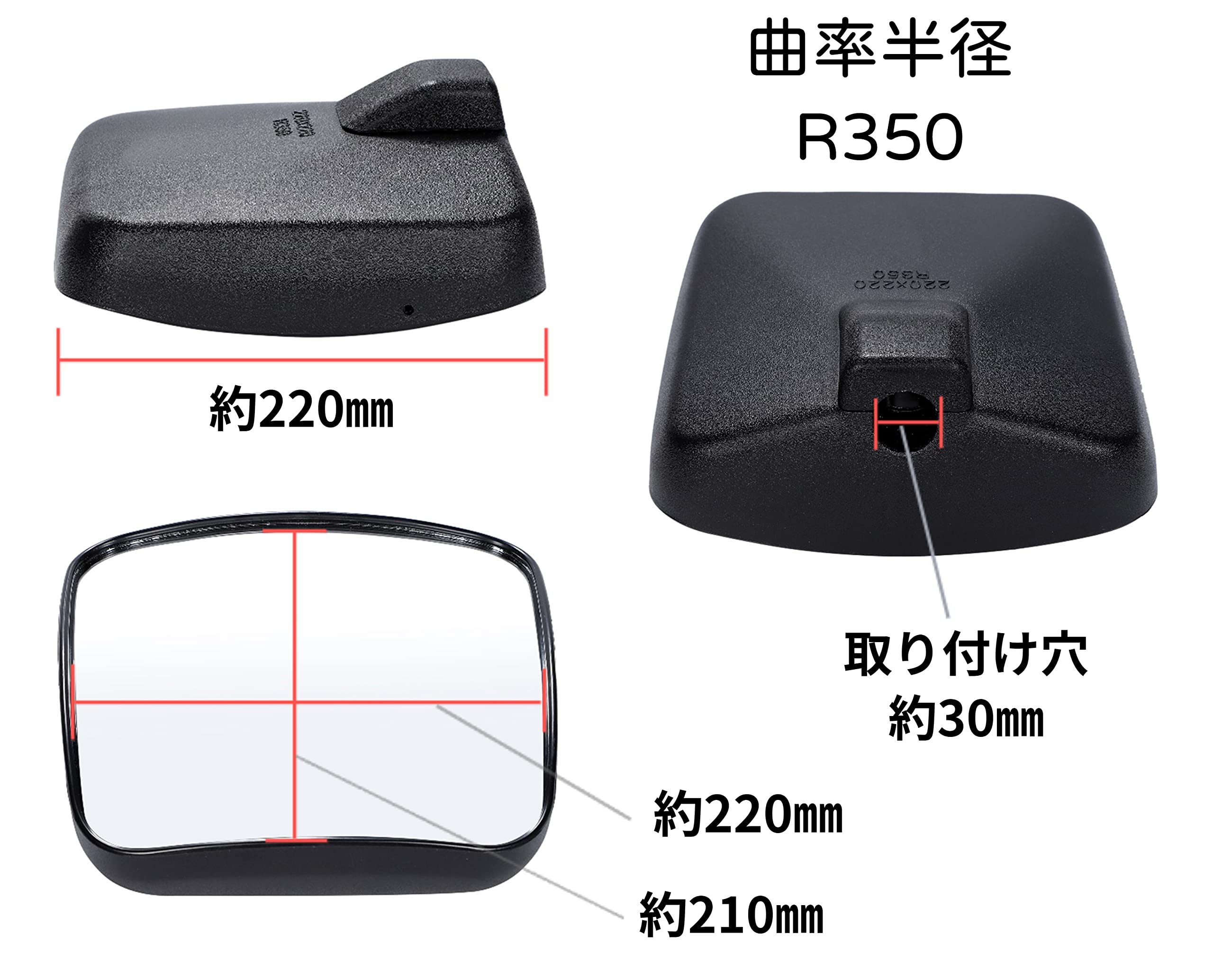 トラックなどの大型車汎用のサイドアンダーミラーです。<br> 狭いスペースでの駐車や左折の確認、高速の合流点、雪国では除雪目印用のポールへの衝突防止にも活躍します。<br> <br> 【取付方法】差し込み式<br> 【取付サイズ】直径約30mm球 <br> ※穴寸法ではありません。<br> <br> 適合車種:<br> 日野:プロフィア、レンジャー等<br> いすゞ:ギガ、フォワード<br> <br> ※社外品<br> <br> ※取扱説明書は付属しておりません。<br> ※本製品は輸入品のため、ご利用には支障のない程度の小傷や汚れ等付いている場合がございます。<br> 予めご理解の上ご購入下さい。<br> ※商品使用時、使用後の直接・間接の損害については、その責任を一切負いかねます。<br> ご了承の上、お客様の責任の元、ご使用ください。<br>