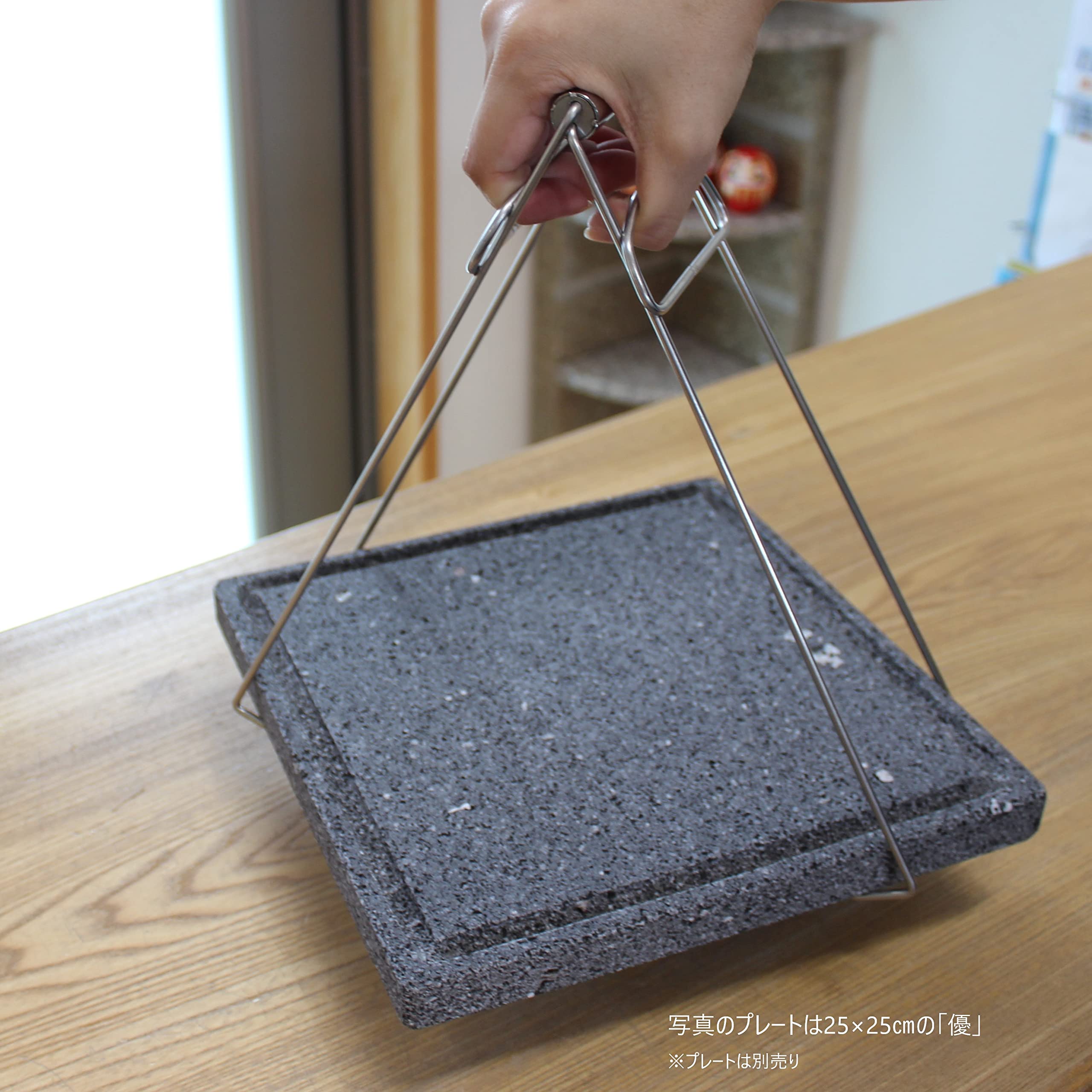 溶岩プレート用日本製グリップ(ステンレス) 持ち運び 便利 プレート 掴む 移動 キッチン 焼肉 BBQ ホットプレート 挟む トング