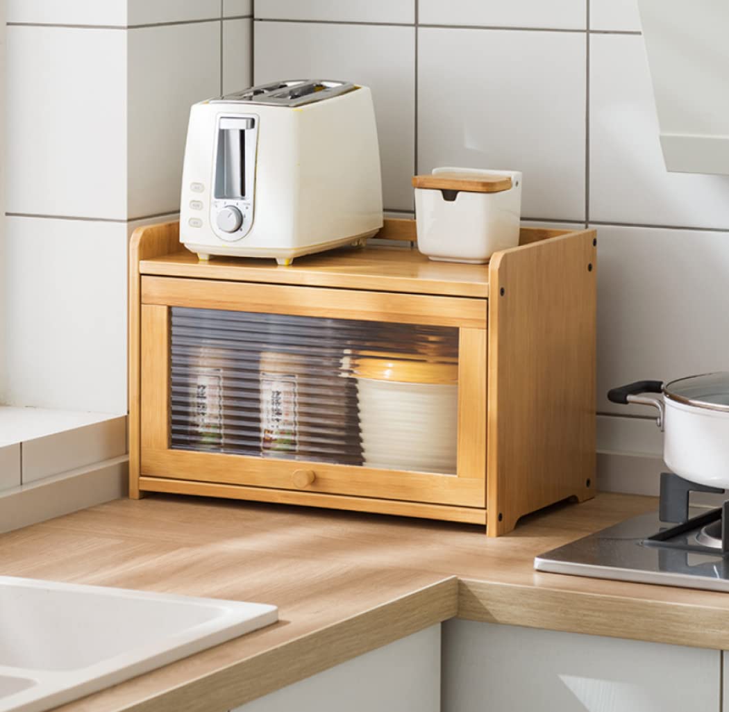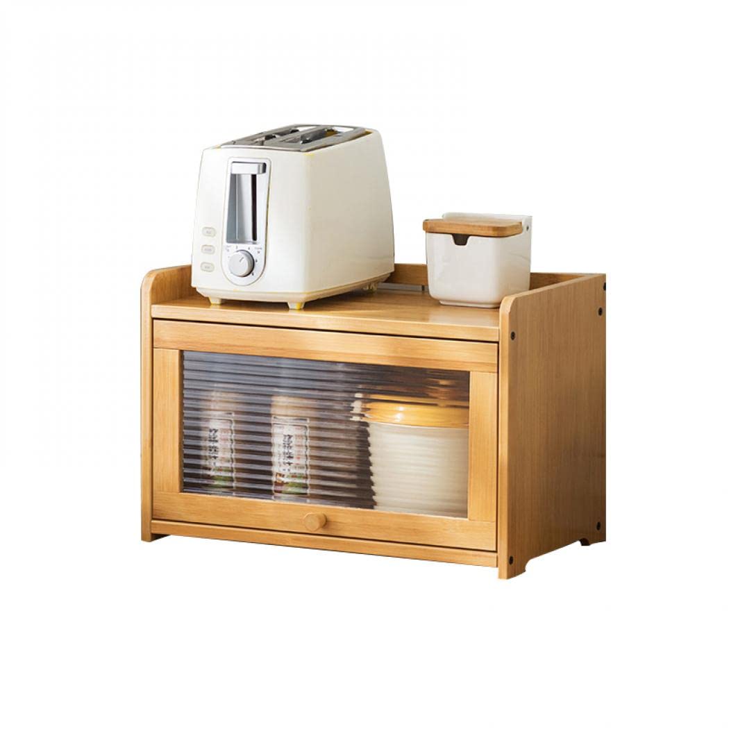 [MISHIWVN] 食器棚 卓上食器棚 キッチン収納棚 キッチンキャビネット レンジ台 アクリル扉 組み立て式 おしゃれ 竹製 収納便利 台所収納 (原色 1段 42cm)