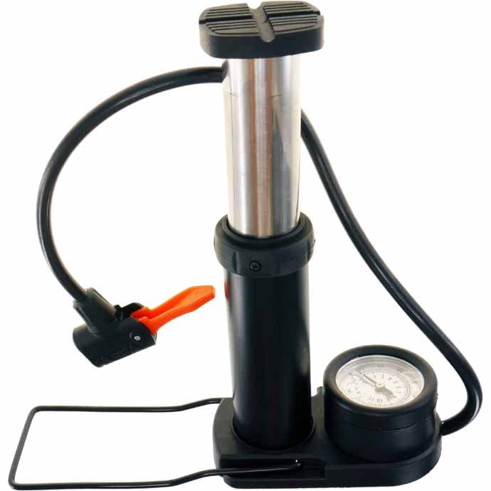 色々な物に空気を入れることができる空気圧ゲージ付きフット式自転車空気入れです。