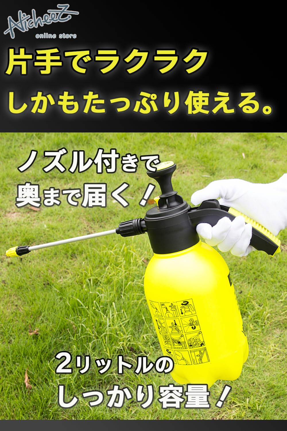 Nicheez 高圧洗浄機 加圧式 ポンプ ハンディ 水圧 噴霧器 コードレス 洗車 エアコン洗浄 蓄圧式 簡易 2リットル ノズルつき 電源不要