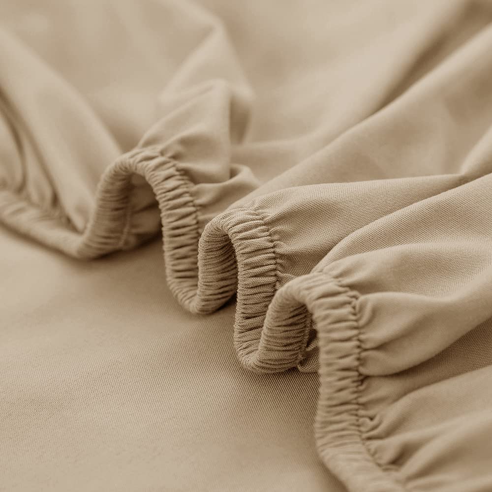 Treeflyheart ボックスシーツ 厚さ45cm シングル・キャメル 吸水速乾 シーツ ベッドカバー 100x200cmのサイズ 着脱簡単 マチ部分約45cm抗菌・防臭