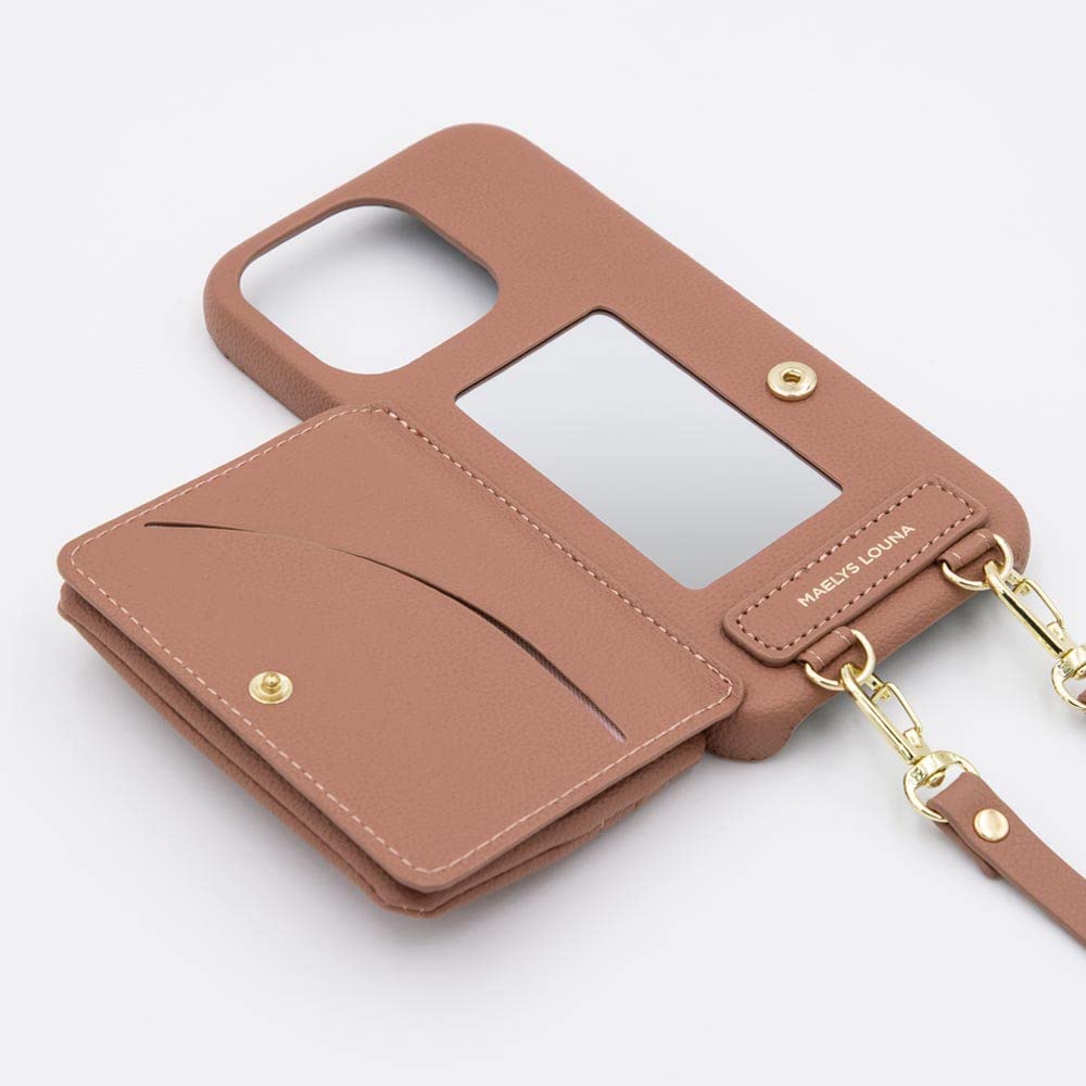 [ MAELYS LOUNA 公式 ] iPhone 14 Pro 対応 リング付きポーチ スマホショルダー【 ミラー付きスマホケース 】レディース カード収納 肩掛け ショルダーケース [ UNiCASE ] Clutch Ring Case for iPhone 14 Pro (Pink)