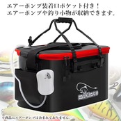 ポケット収納付き釣りバッカン。 釣具をいれたり、魚、水をいれる事ができる便利な釣りアイテムです。 変形しにくく、軽量、ソフトな高品質EVA素材を使用。 エアーポンプ装着口ポケットがサイドに付いており、 エアーポンプを置くことができます。 側面には収納袋がついて、エアーポンプや釣り小物が収納可能。 ショルダー、手提げどちらでも持ち運び出来るので便利。 使用しない時は折りたたんで収納も可能です。 上部にメッシュカバーがあり、蓋を全て開封しなくても小さい魚を入れたり空気の入れ替えが出来ます。 ダブルファスナーで開閉がしやすく、仕切りもないので自由に使用出来ます。 【商品仕様】 サイズ:約40×24×22cm 重量:約700g