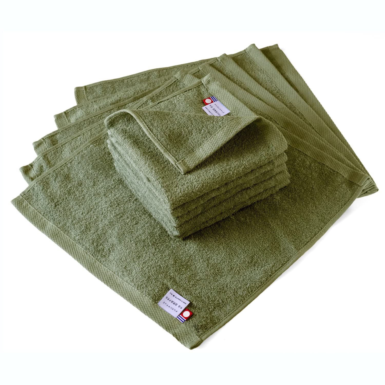 [oruta] 洗顔 ハンドタオル 今治 認定 自然派 今治タオル 10枚 セット 日本製 オシボリ 顔拭き 薄手 吸水 速乾 部屋干し 綿100(10枚セット, カーキ)