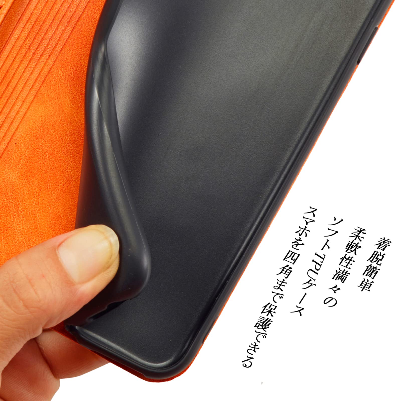 人気の秘密①【素材改良】本商品の外部カバーは牛革繊維を人工合成という生産プロセスで仕上げられた合革で、普通の合革より、性能上の 耐熱性、耐摩擦が一層アップされた。表面生地が硬すぎず、やわすぎず、ちょっと良い手触りです。手汗が出てきても滑りにくく、ケースにも変な匂いがございません。インなケースは弾力性のあるソフト素材を採用しており、四角までしっかり保護でき、実用性高い手帳型です。<br>人気の秘密②【使う便利性と優れた収納性】横置きスタンド機能た付いて、お好きな角度で動画鑑賞や読書などを楽しめます。ケースの裏側にカードポケット3つ, お札入れポケット一つ、名刺や定期券の収納に優れていて、ちょっととしたお出かけてもこれで十分です;<br>人気の秘密③【ストラップホール付き】二つの小さなストラップホールの位置が黒い足とケースの右下にある。お気に入りのストラップを付けることができます。※ストラップは付属しておりません。