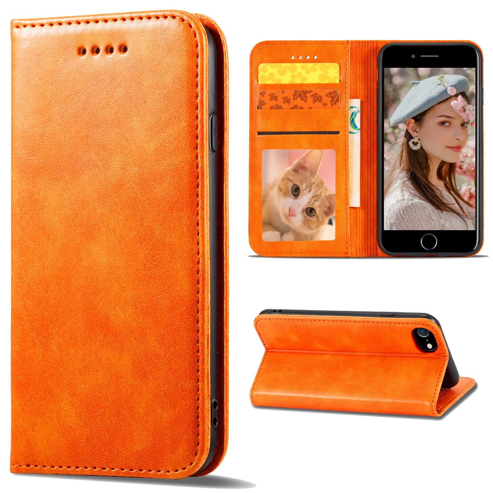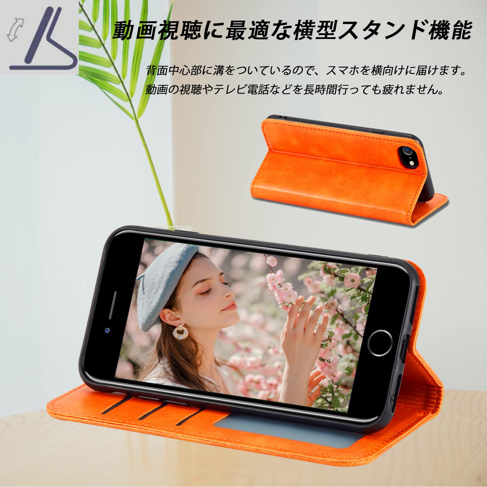 iPhone SE ケース 第3世代 iPhone SE(第2世代) ケース手帳型 iPhone7手帳ケース iPhone8手帳型 アイフォン7 手帳 スマホケース se3 カバー iPhone SE 第3世代 あいふぉん手帳型ケース カード収納 iphone case マグネット内蔵 スタンド機能 耐衝撃 薄型 軽量 防水 耐摩擦 シンプル 男女兼用 (iPhone7 / 8 / se 2020 / se 2022 4.7inch対応) オレンジ