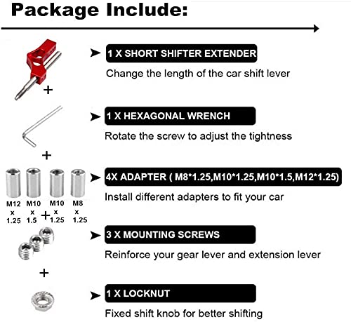 AUTO MT JDM CAR アクセサリー ギアシフトノブ 調節可能なエクステンダー ギアシフトノブ高さレバー エクステンダーキット アダプター4個付き