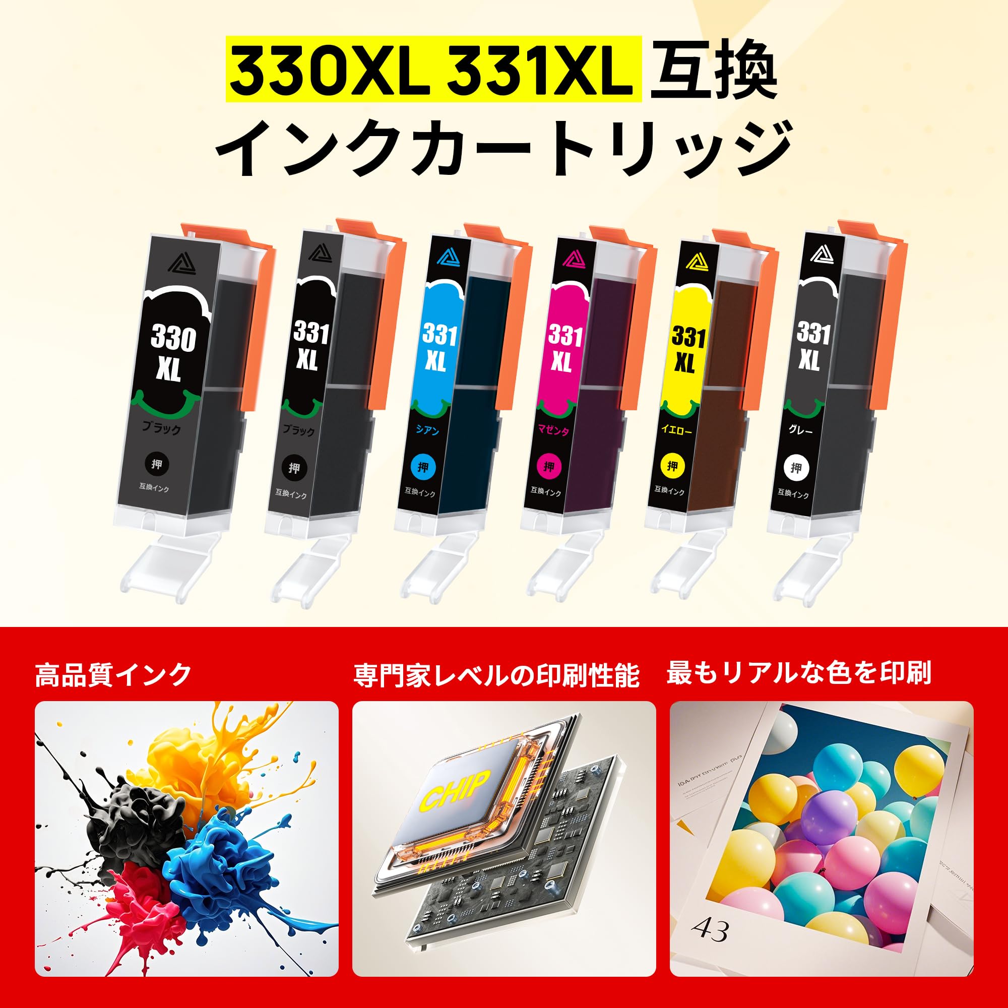 BCI-331+330/6MP インクカートリッジ キヤノン 用 BCI-331(BK/C/M/Y/GY)+330 6色マルチパック 純正 (大容量)と同量 互換 対応機種:PIXUS TS8530 TS8630 TS8730 TS8830 インク