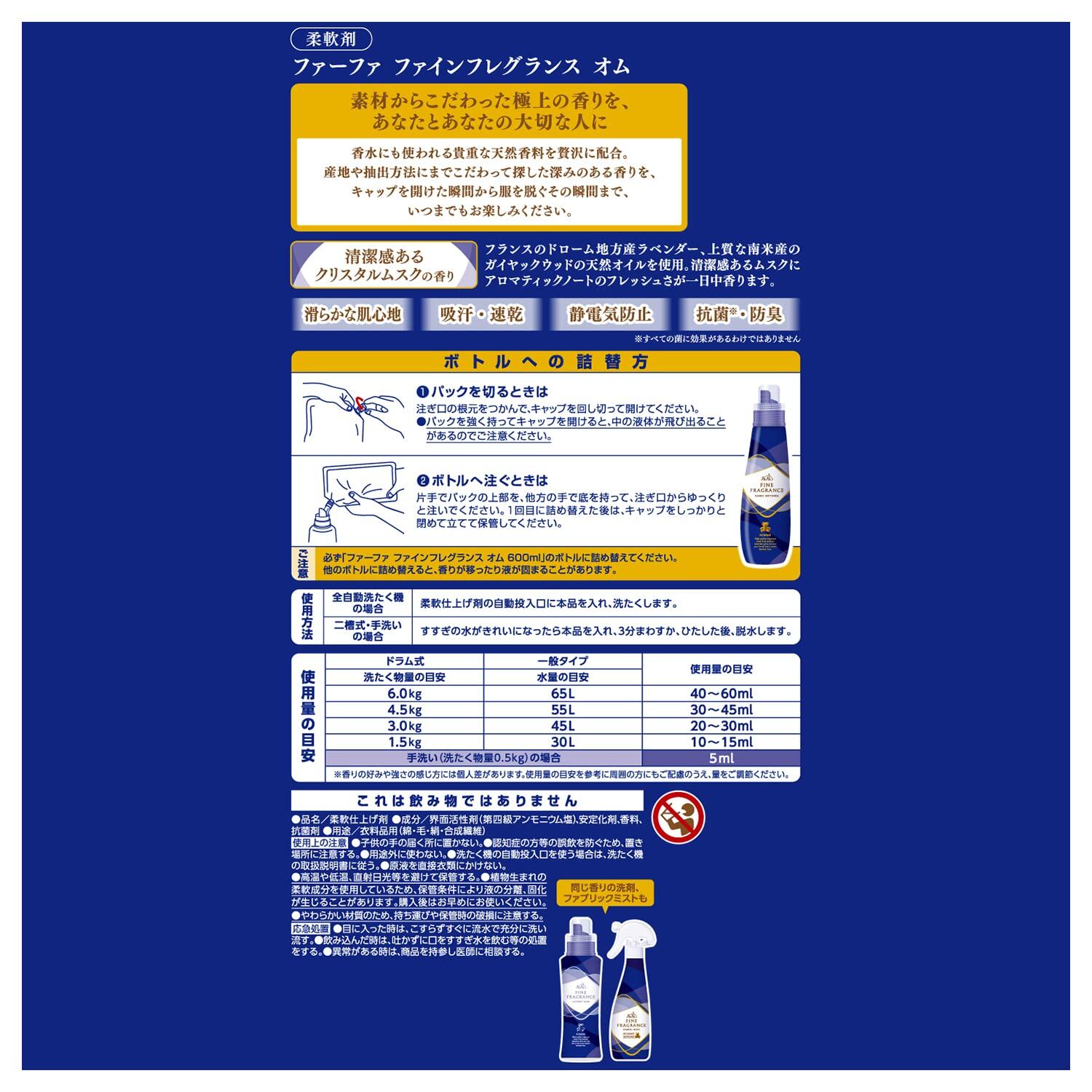 【大容量】 ファーファ ファインフレグランス 柔軟剤 オム (homme) 香水調 クリスタルムスクの香り 詰め替え 840ml