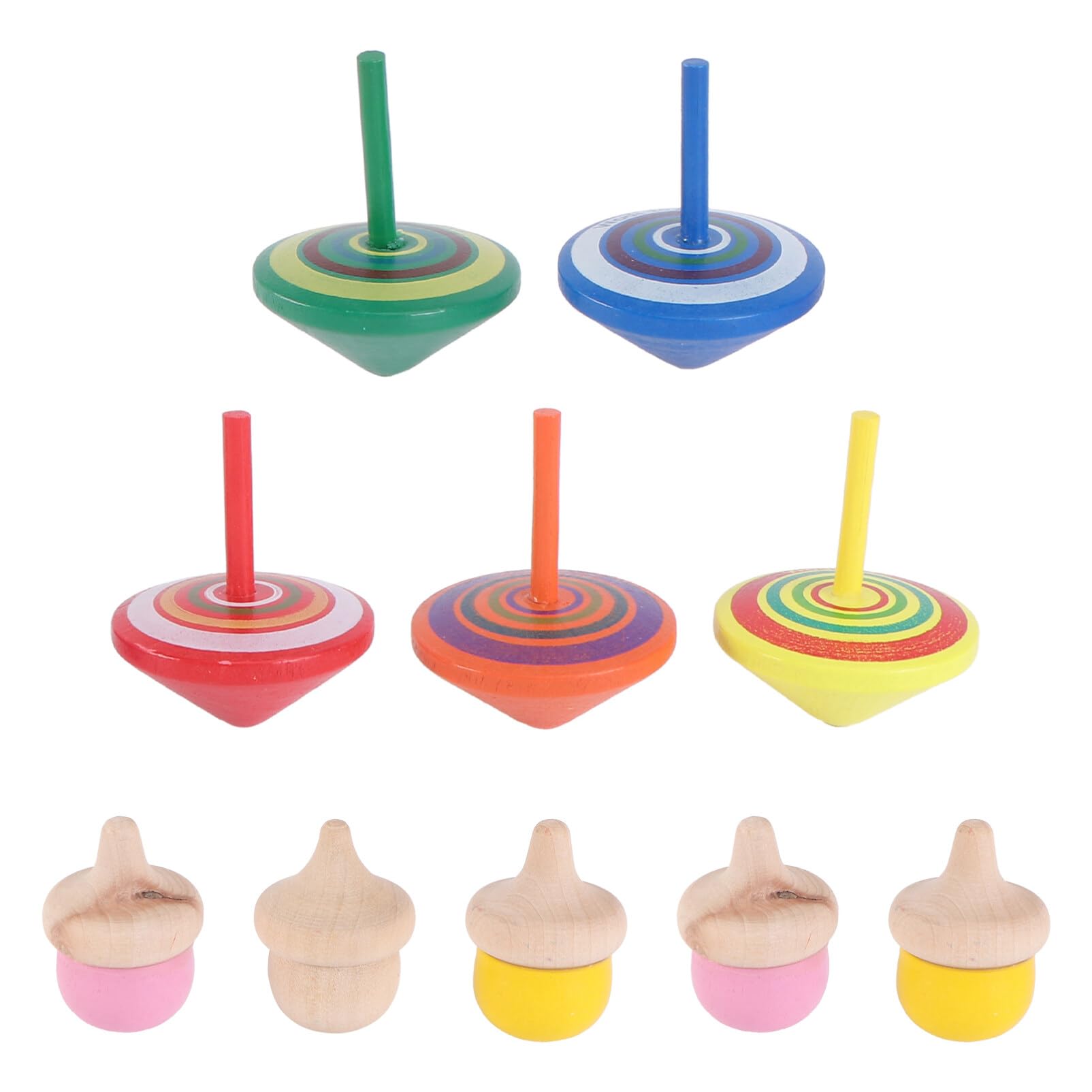 LIOOBO 10個 手回しコマ 木製 こま コマ 木製 こま 子供 おもちゃ ランダムカラー(カラフルコマ5個+どんぐりのこま5個)