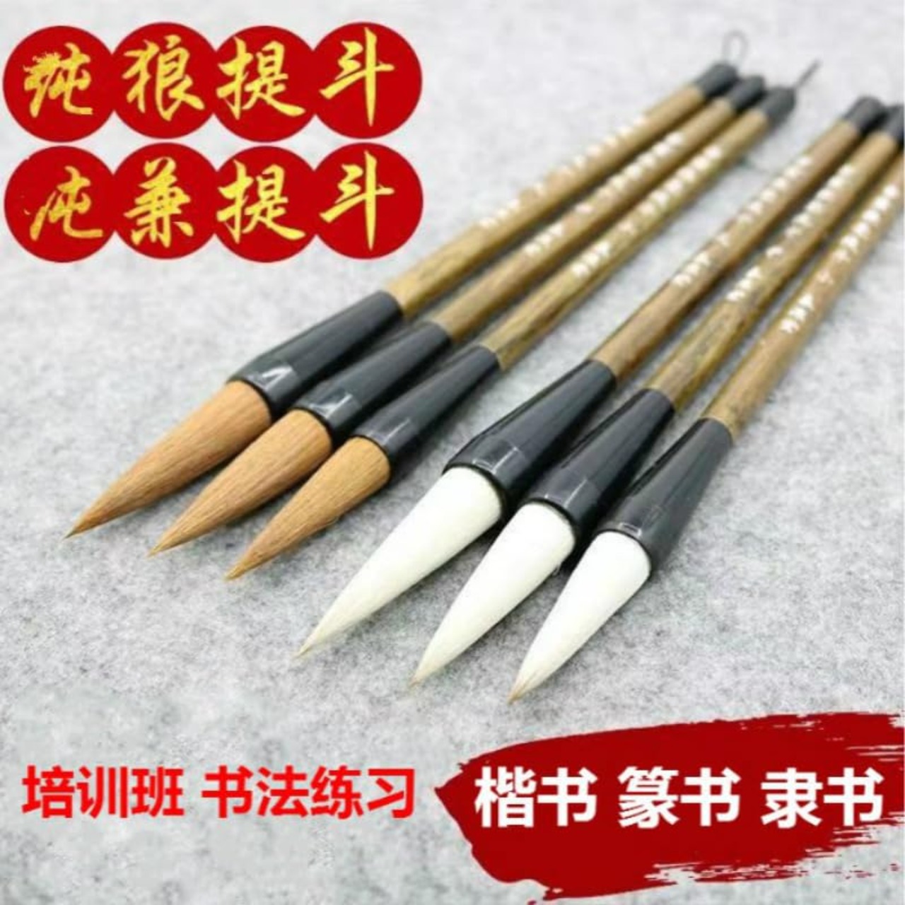 中国のコピー工芸品書道練習画材兼毫熊毫斗笔大号狼毫羊毫书法大字提斗写对联毛笔抓笔(1個麻竹提斗兼毫)