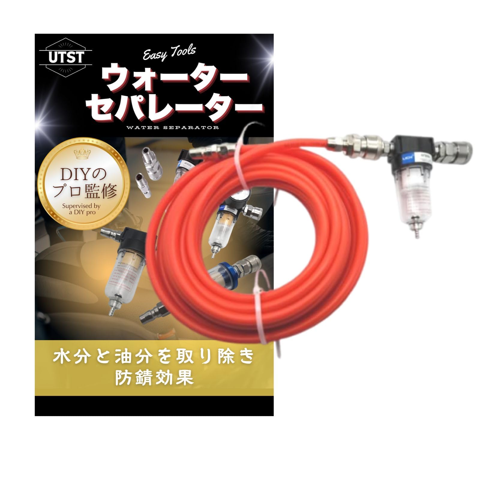 UTST エアーホース 10m ウォーターセパレーター エアー工具用ホース エアーコンプレッサー 水分除去 (赤エアーホース+セパレーター)