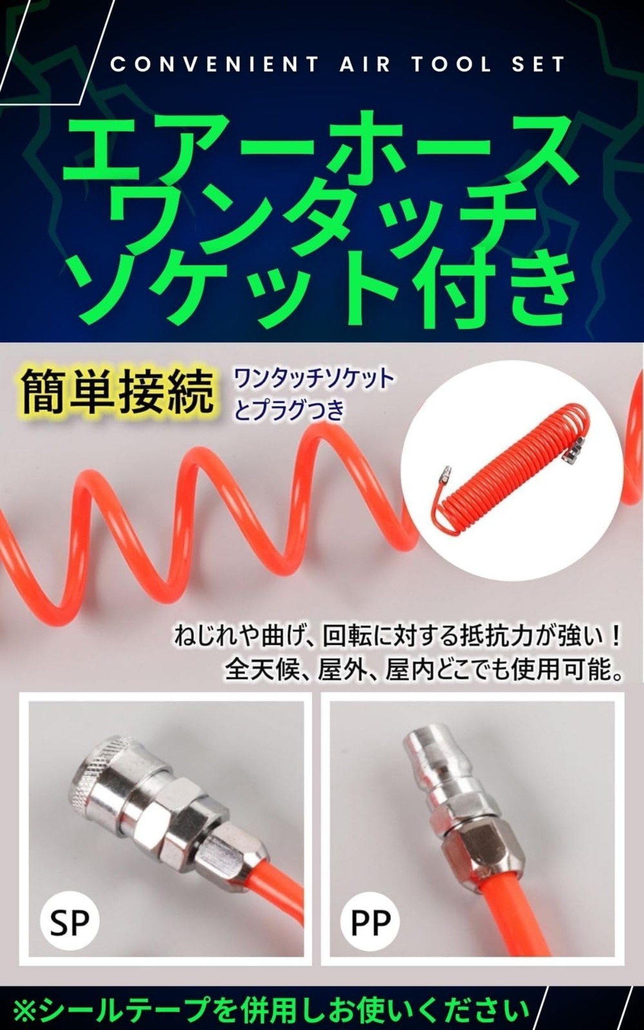こちらのスパイラルホースとダスターガンのセットは、自宅・職場・オフィス・学校・工場・倉庫など色々なシーンでお使いいただけます。日曜大工や自宅洗車の水飛ばしや・ホコリ塵などの飛ばしなどエアーホース延長用などにお使いいただける便利大工グッズセットです。