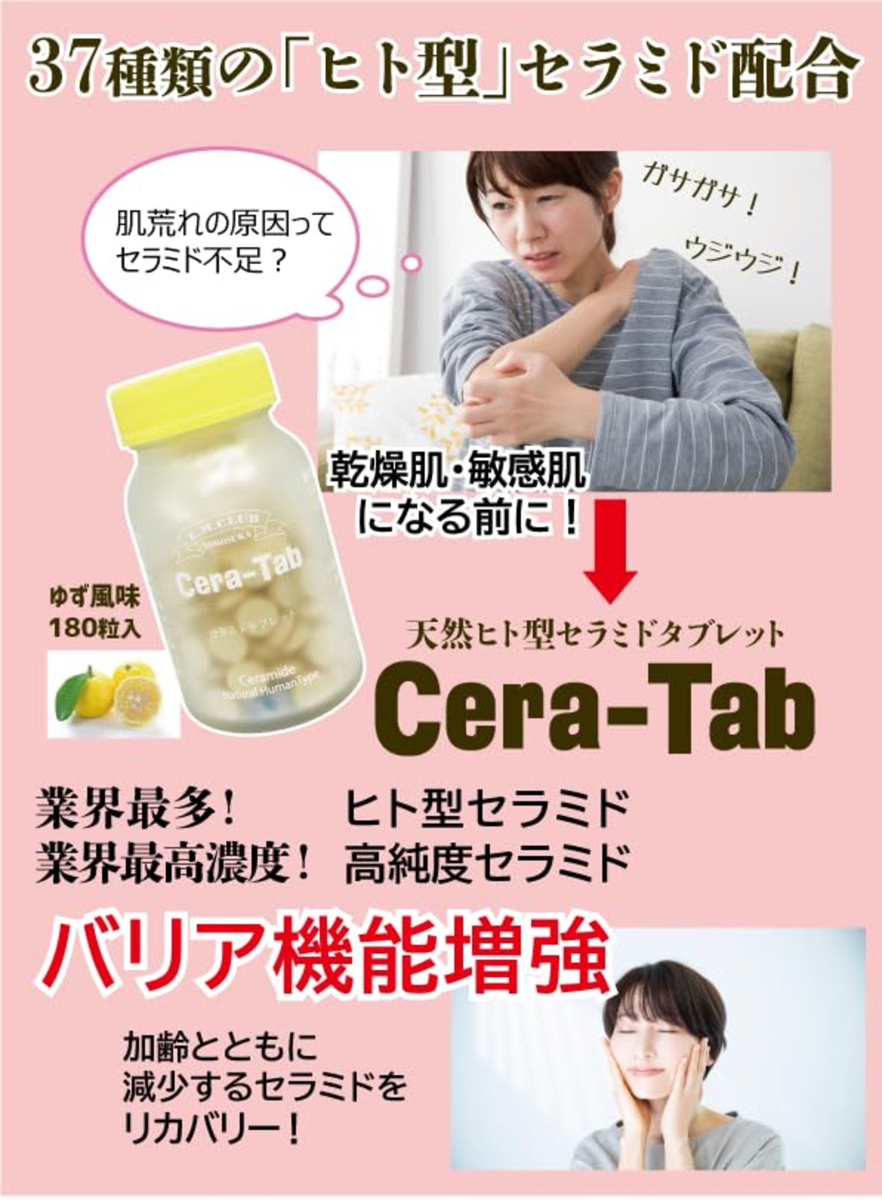 天然ヒト型セラミド 配合 Cera-Tab セラミド タブレット ゆず風味 180粒入 30日分 スフィンゴミエリン 5種類のビタミン 乾燥肌 敏感肌 セラタブ