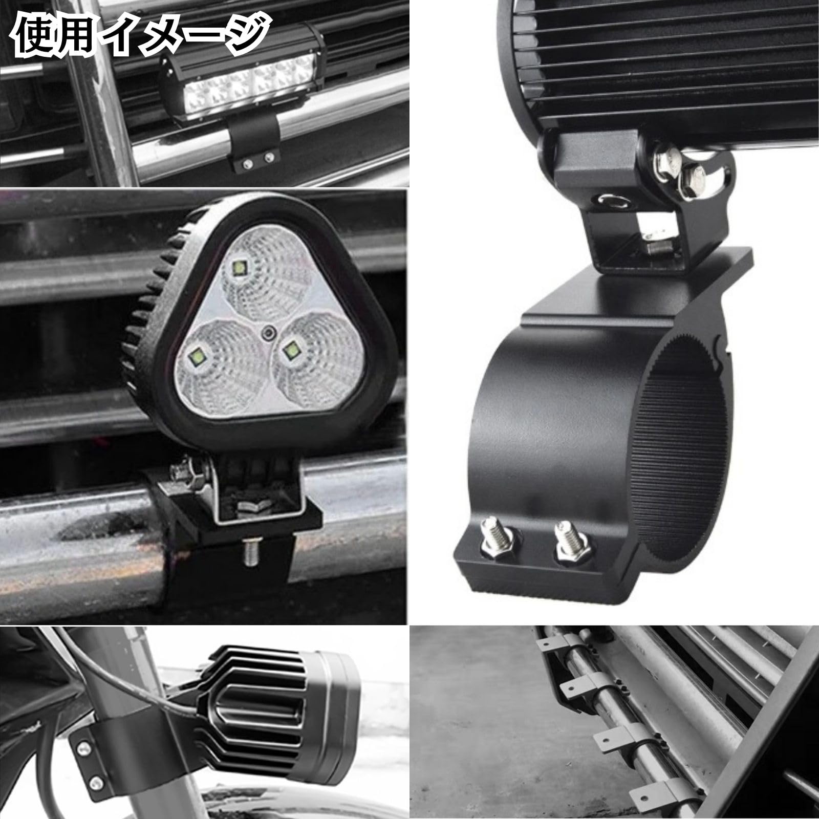 フォグランプやバーライト、アンテナなどを取り付ける事ができるステー2個セットです。車のバンパーやパイプ、グリルガード、ルーフラックなどに設置可能です。 ゴム製のシートを付属しております。ゴムシート巻くことで、滑り止め・傷防止の効果があり、振動からライトを守ります。 ブラケットをスライドして分割し、ブラケットにパイプとゴムシートを挟み、付属のボルト・ナットを締めることで簡単に設置できます。 サイズはφ40〜45mm、φ49〜54mm、Φ66~71mm、φ76~81mmの4種類ございます。取付箇所のサイズに合わせてお選びください。 様々なオフロード車に対応し、ジムニー、ランクル、デリカ、ラングラー、トラックなどでご利用可能です。また、ガレージや作業場などでのワークライトや作業灯の取り付けにも最適です。
