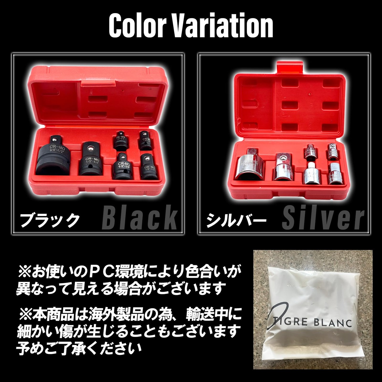 TIGRE BLANC ソケット 変換 アダプター 差込角 インパクト レンチ 対応 クロムバナジウム 1/4 3/8 1/2 3/4 インチ 6点 セット 銀 シルバー